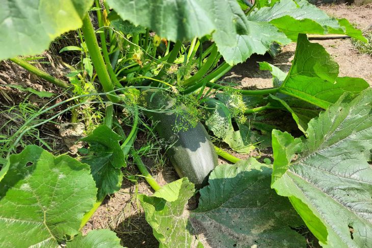 Молодые кабачки можно нарезать кубиками вместе с кожицей и семечками, зрелые овощи нужно очистить и от кожуры, и от внутренностей. Добавьте их в сковороду к овощам, посолите, поперчите.