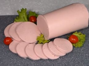 5. После варки колбасу охлаждают под проточной водой, а затем ставят в холодильник для полного застывания на 3-4 часа. Упаковка может быть любая — от коллагеновой оболочки до обыкновенной пищевой пленки.