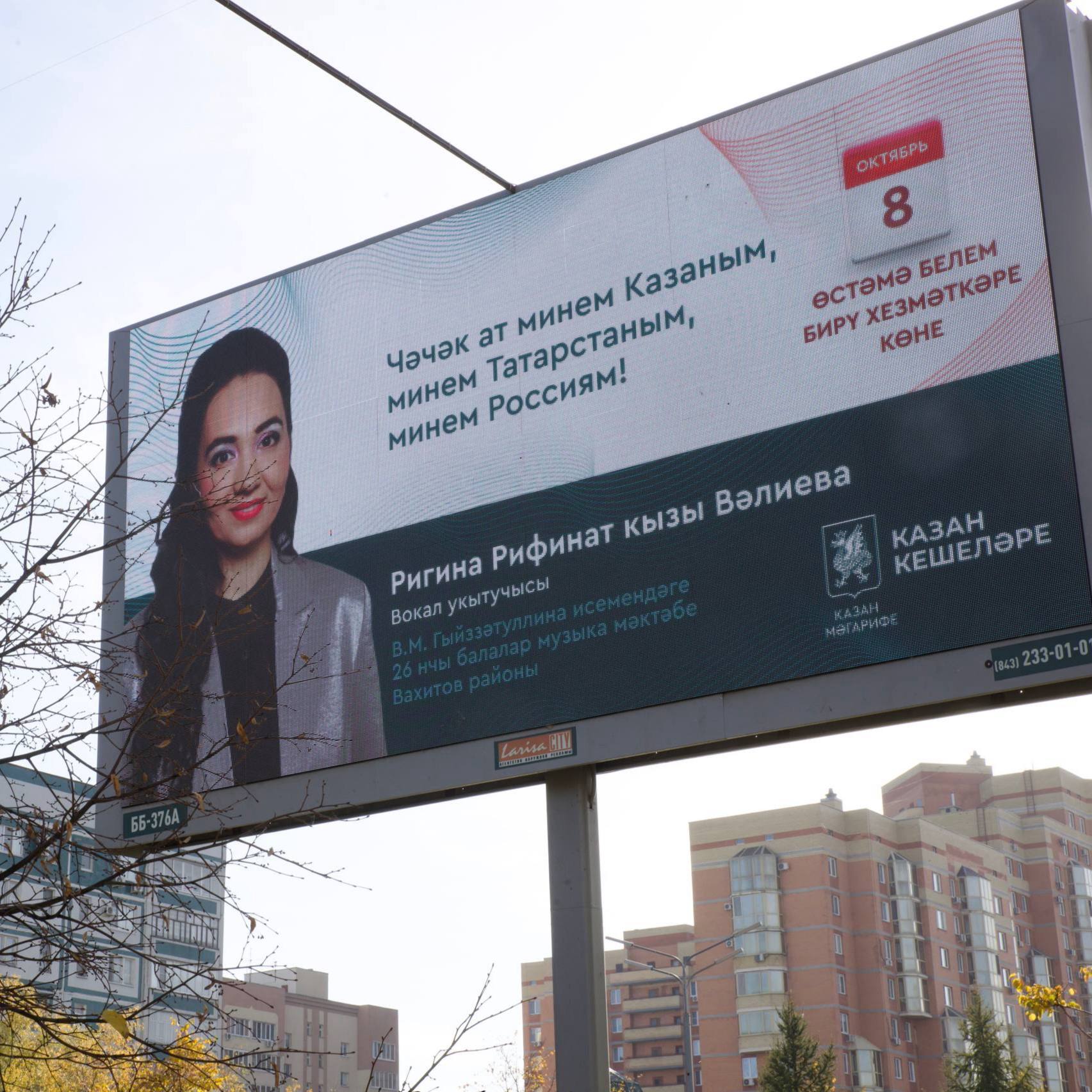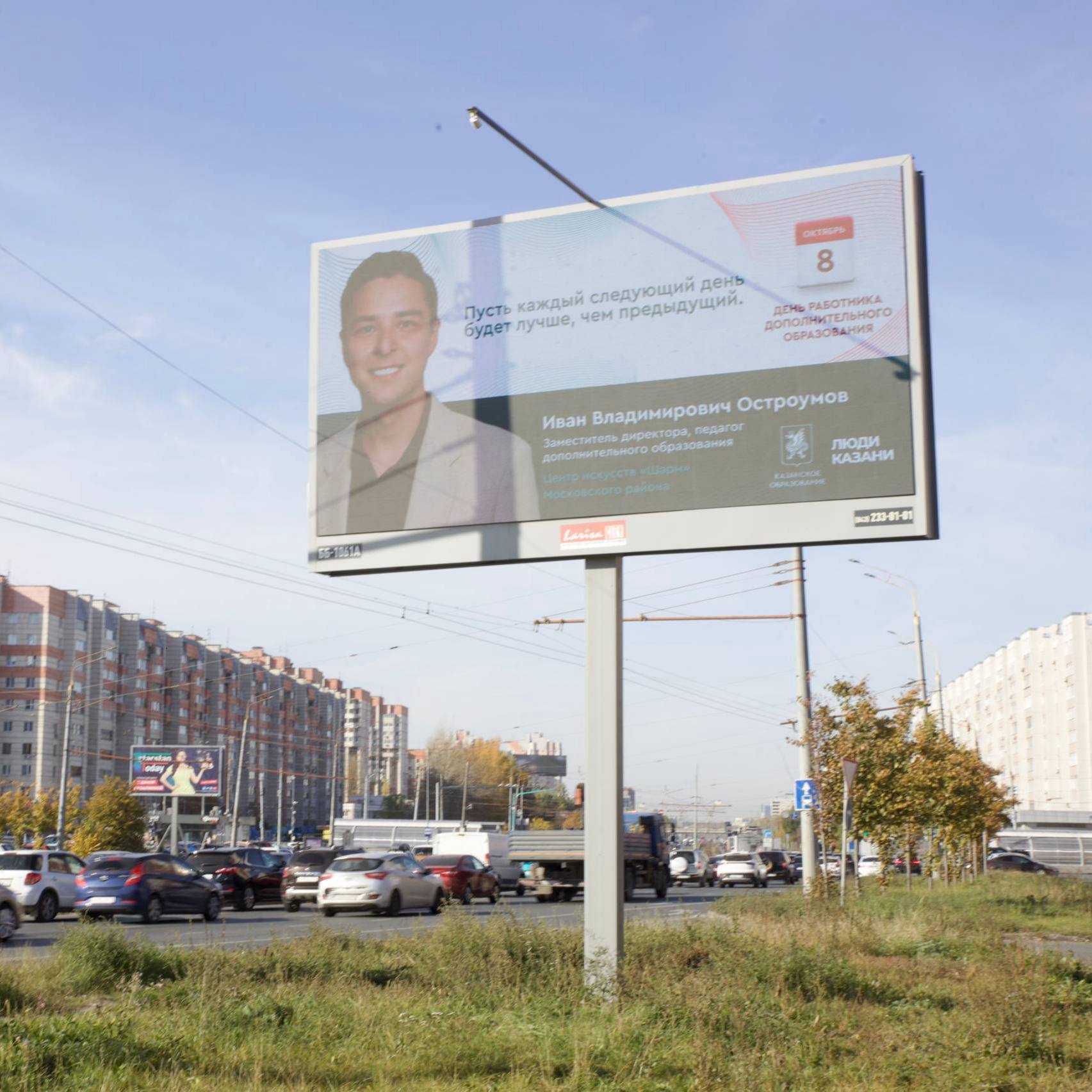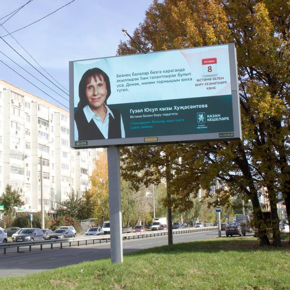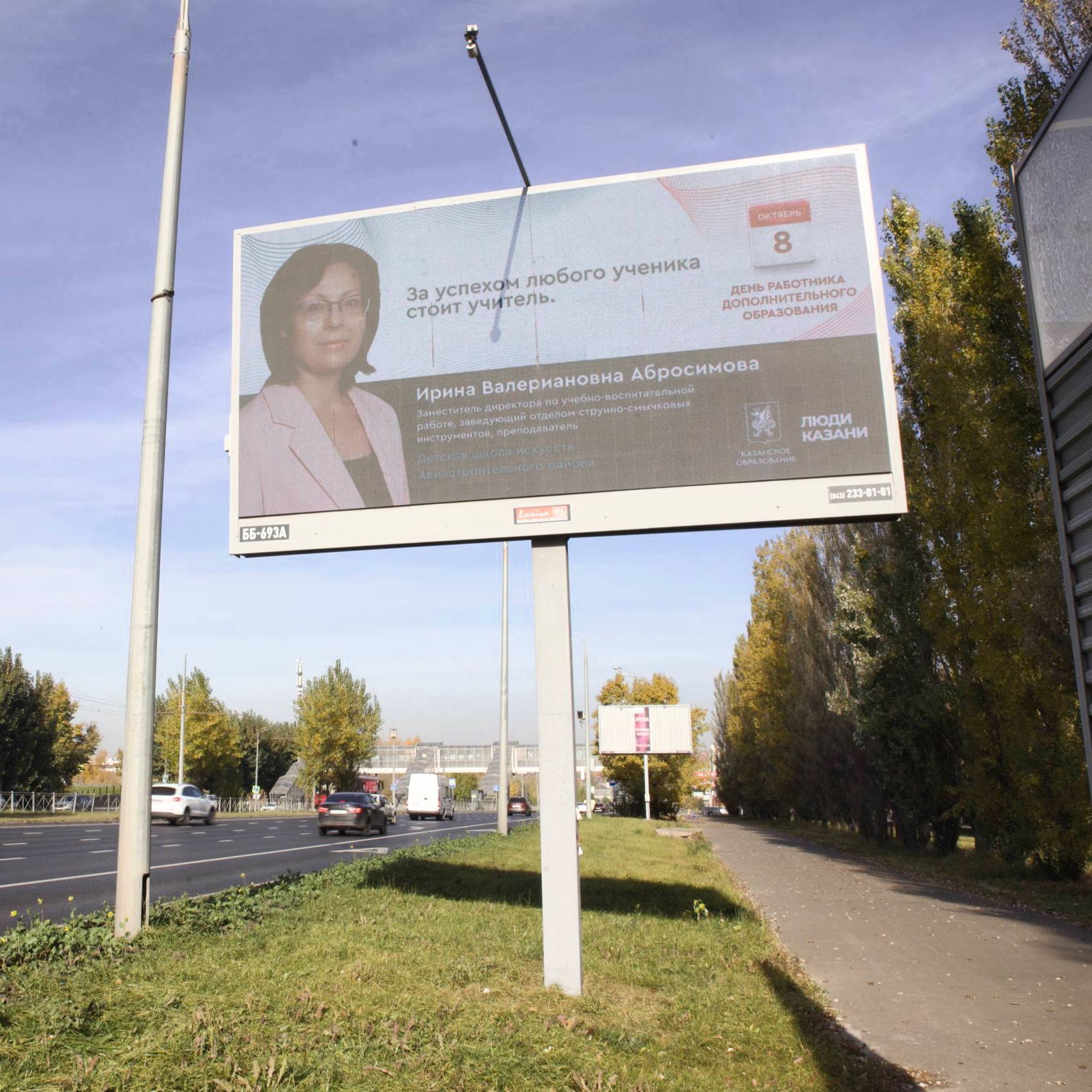 Ко Дню работника дополнительного образования на улицах Казани появились баннеры с портретами педагогов и их цитатами о любимом деле.