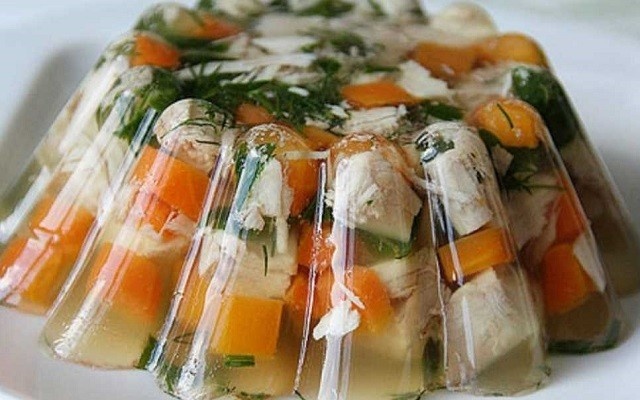 Данный вариант холодца привносит в угощение богатство вкуса, а его приготовление не вызовет трудностей даже у начинающих кулинаров. Ключевыми ингредиентами станут куриное мясо и свиные ножки. Такой микс позволяет добиться наваристого бульона и нежного, рассыпчатого гостя на праздничном столе.
