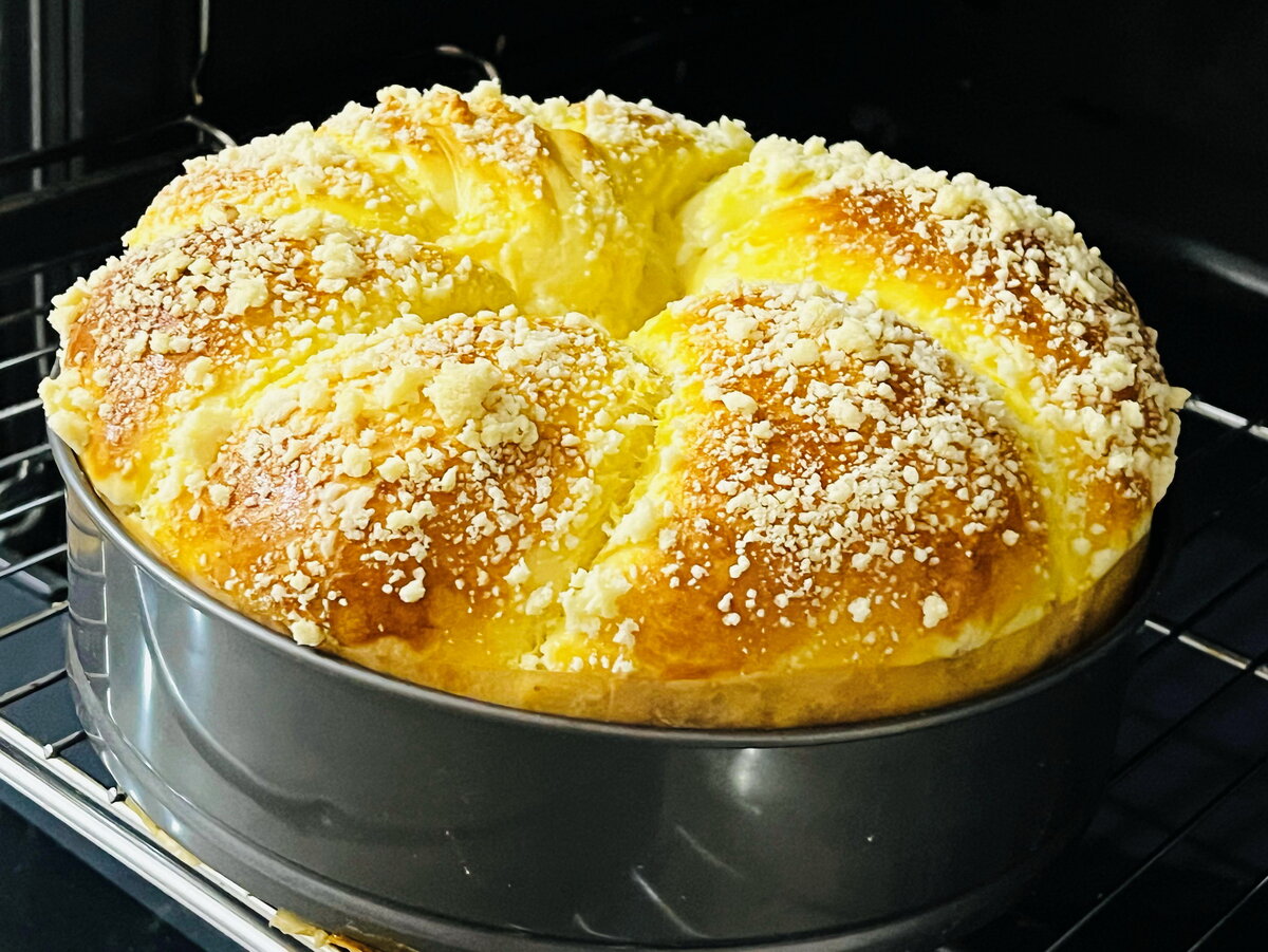 Первый шаг — подготовка опары. Для этого требуется развести дрожжи в теплом молоке с добавлением сахара и оставить на 20 минут, чтобы они активировались. Затем в опару добавить яйца, растопленное масло, а после вмешать муку с солью. Замесить тесто, которое должно быть немного липким, и оставить его подниматься на час.