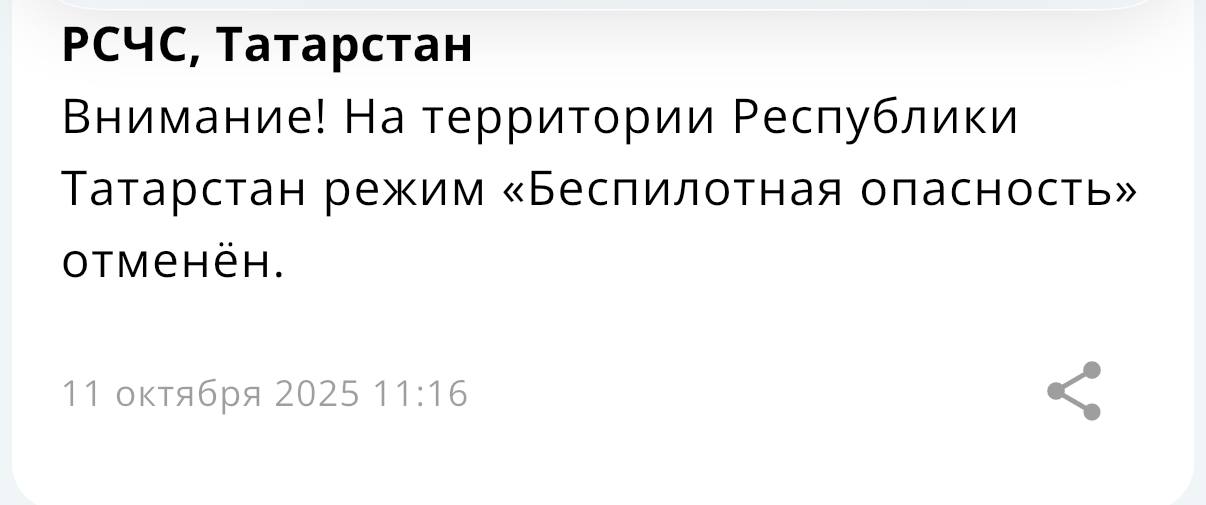 В Татарстане отменили беспилотную опасность спустя почти 10 часов. Ее объявили в 01:36. Она стала уже четвертой с начала недели.