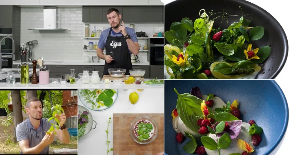 Шеф-повар предлагает простые, но изысканные способы применения огородных трав. В его рецептах можно встретить: