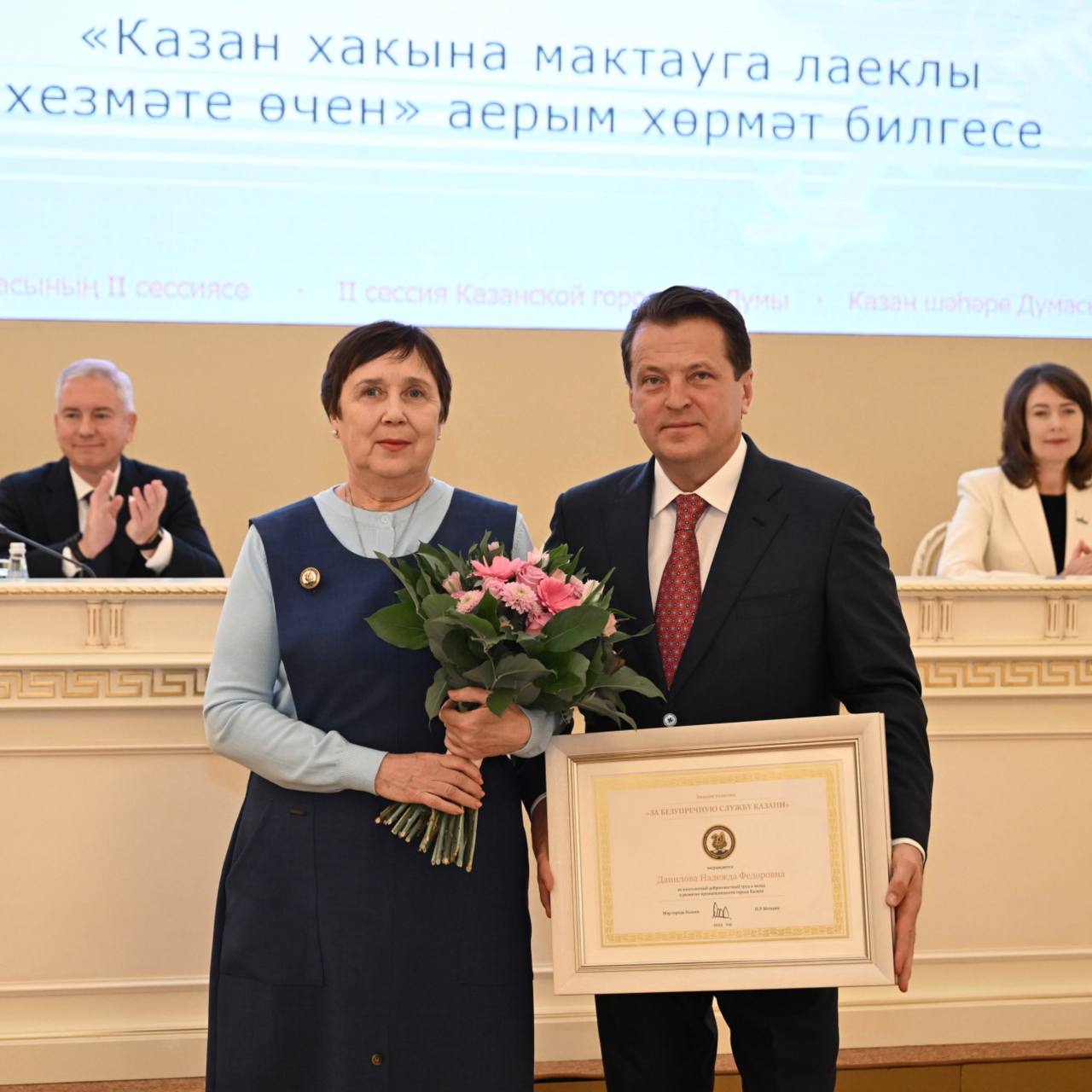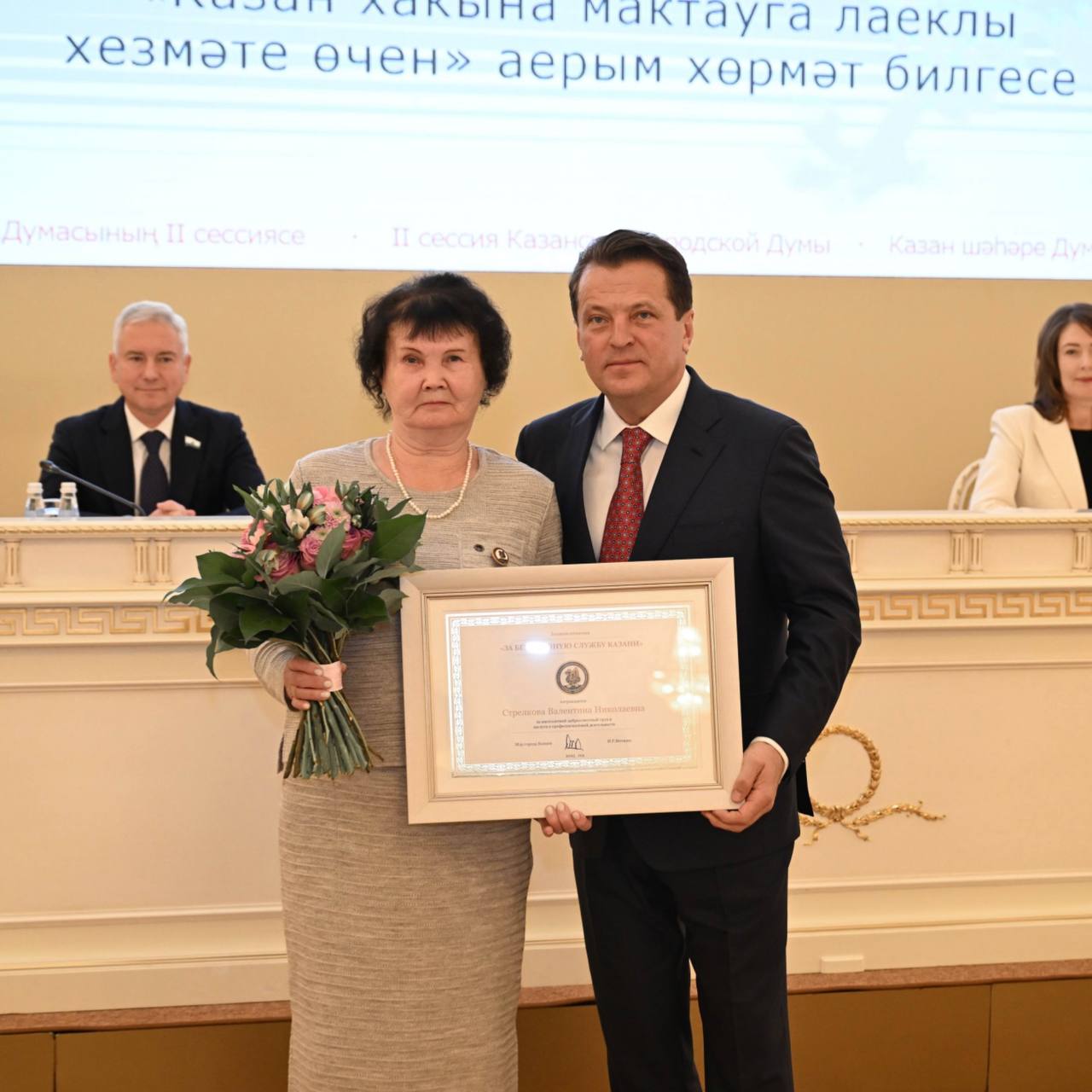 Знаком отличия «За безупречную службу Казани» награждены дезинфектор «Дезинфекционной станции Казани» Валентина Стрелкова, инженер-конструктор бюро «Радиоприбор» Надежда Данилова и машинист компрессорных установок завода «Органический синтез» Мунир Сафин.