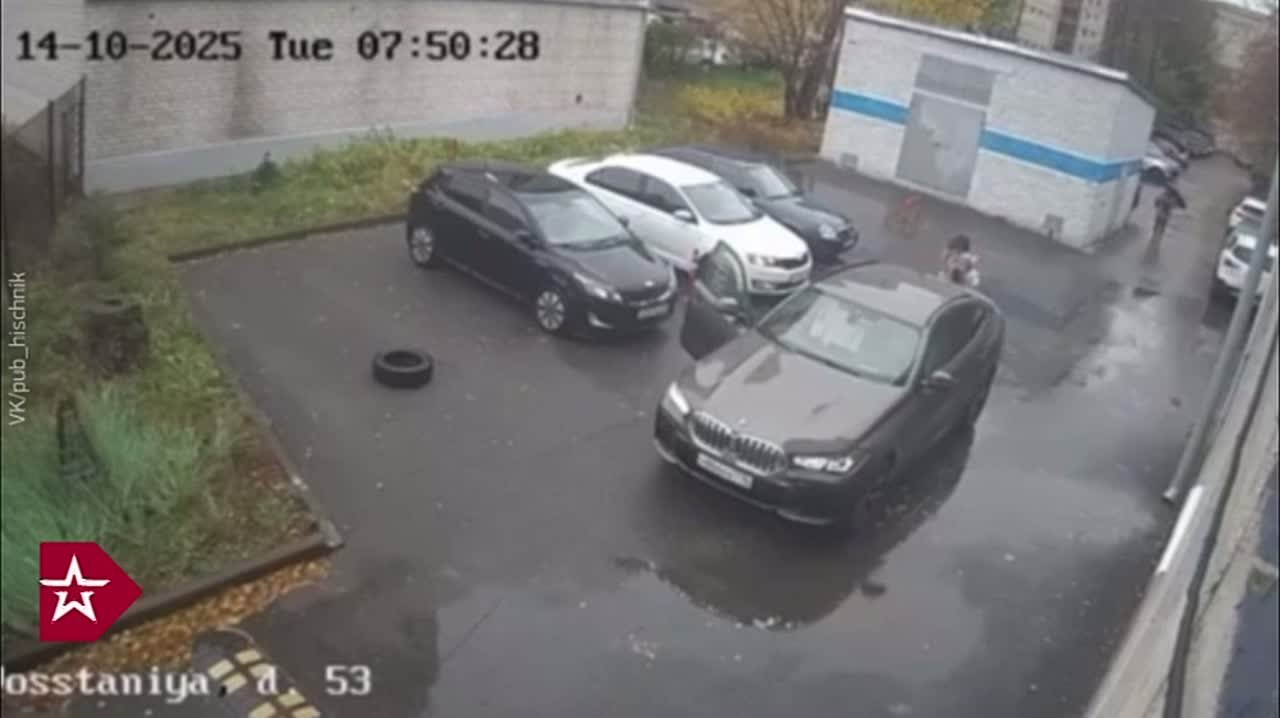 Судя по кадрам, нападавший передвигался по городу на электровелосипеде в черном костюме и шлеме, закрывающем лицо.