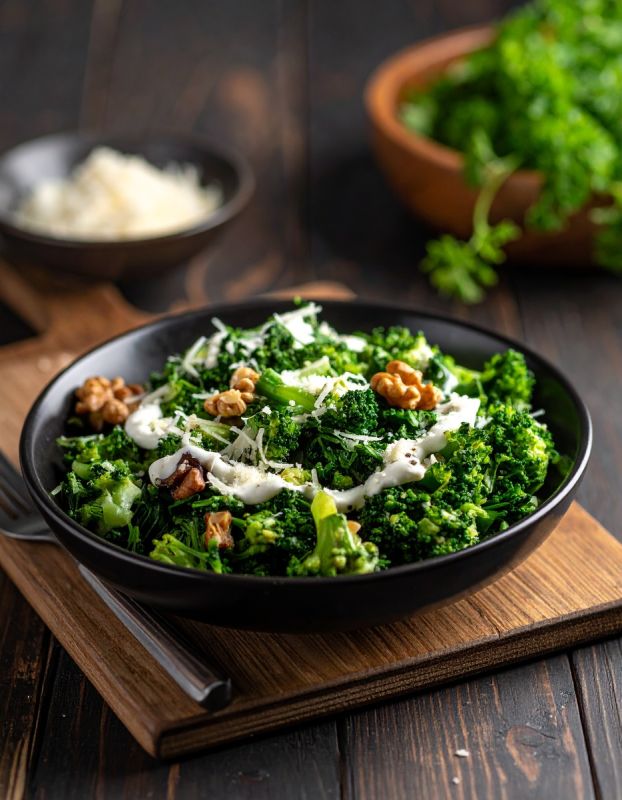 Для любителей брокколи существует множество вариантов её готовки, одним из самых популярных является теплый салат с орехами и чесночной заправкой.