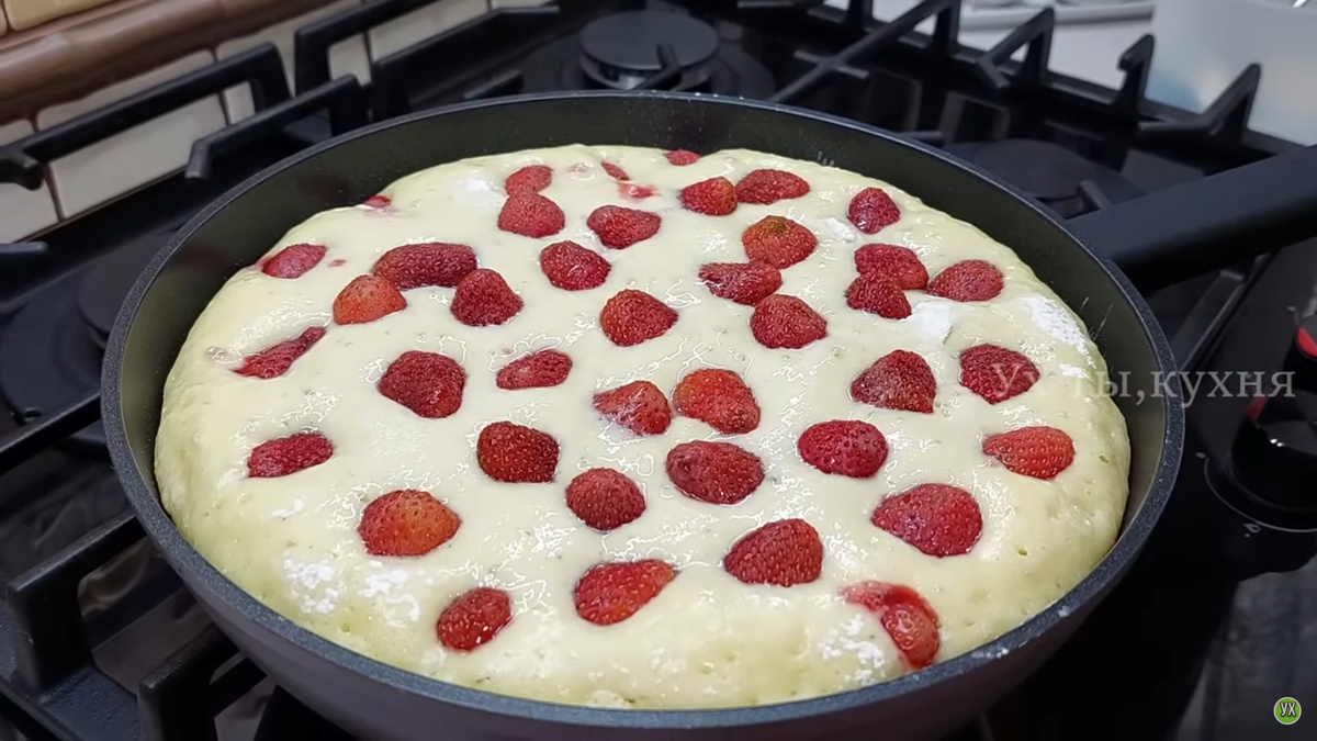 Лето — время свежих фруктов и ягод, а клубника в этом сезоне просто нарасхват. Для всех любителей кулинарии представлен замечательный рецепт клубничного пирога, который готовится прямо на сковороде!