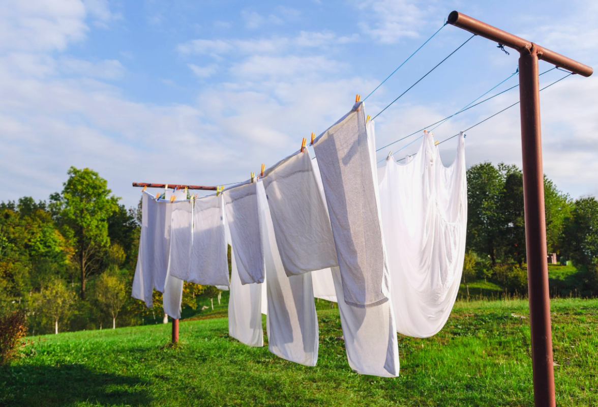 - Естественная сушка считается более бережной, но имеет свои минусы. Ветер или солнце могут сделать белье жестким, а также возможно появление неприятных запахов в плохо проветриваемых помещениях.