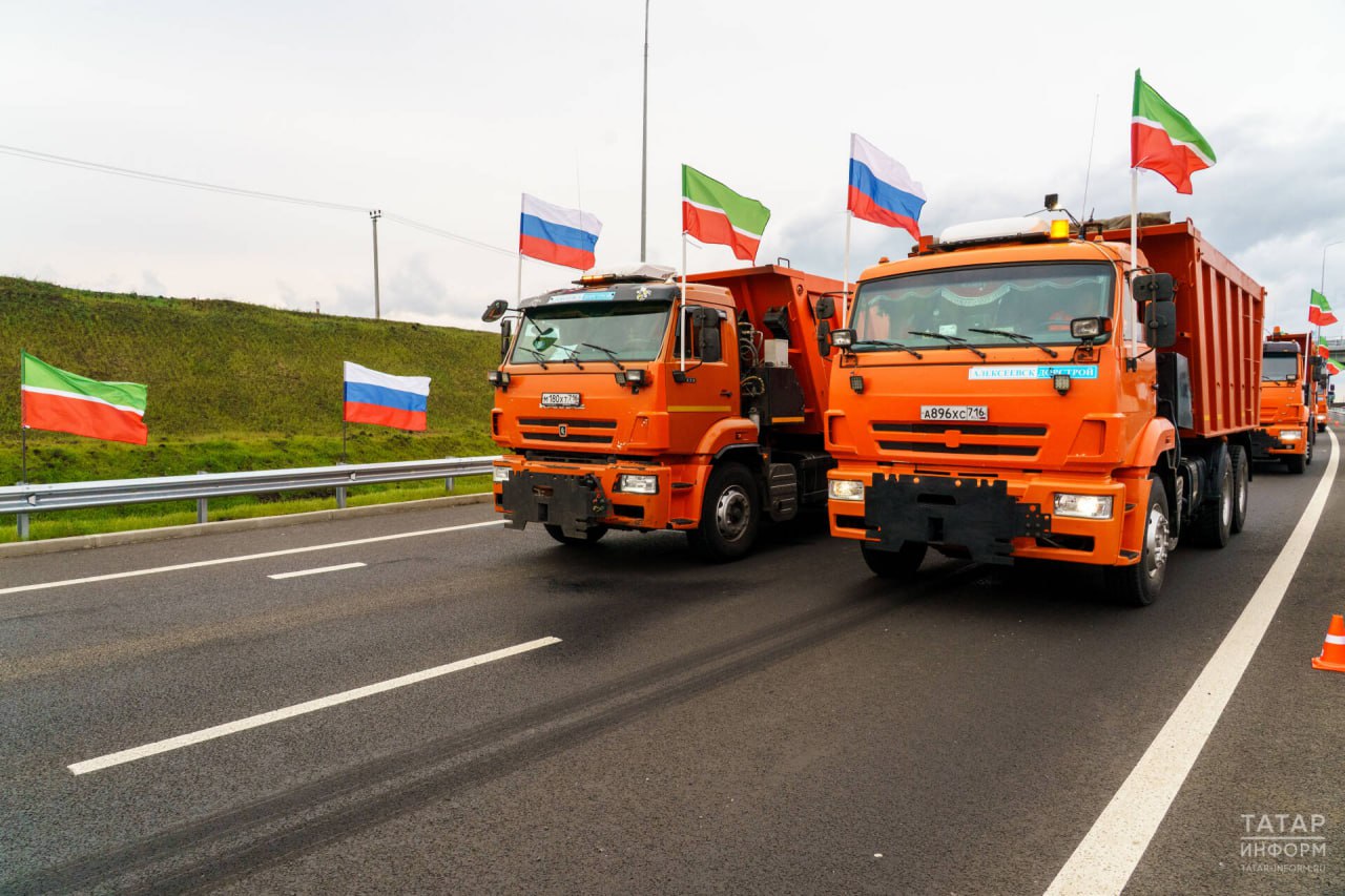 Кадры открытия движения по участку дороги Казань - Оренбург в обход Сокуров