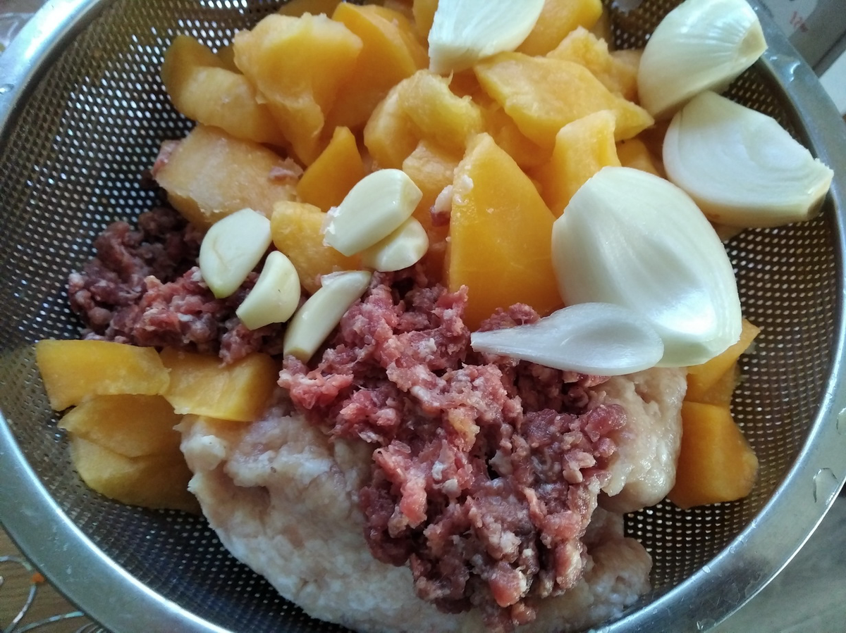 1. Все ингредиенты тщательно измельчаются при помощи мясорубки. Этот шаг важен даже если используется готовый фарш; необходимо, чтобы все компоненты хорошо перемешались. Например, можно использовать говяжий и куриный фарш в одной комбинации.