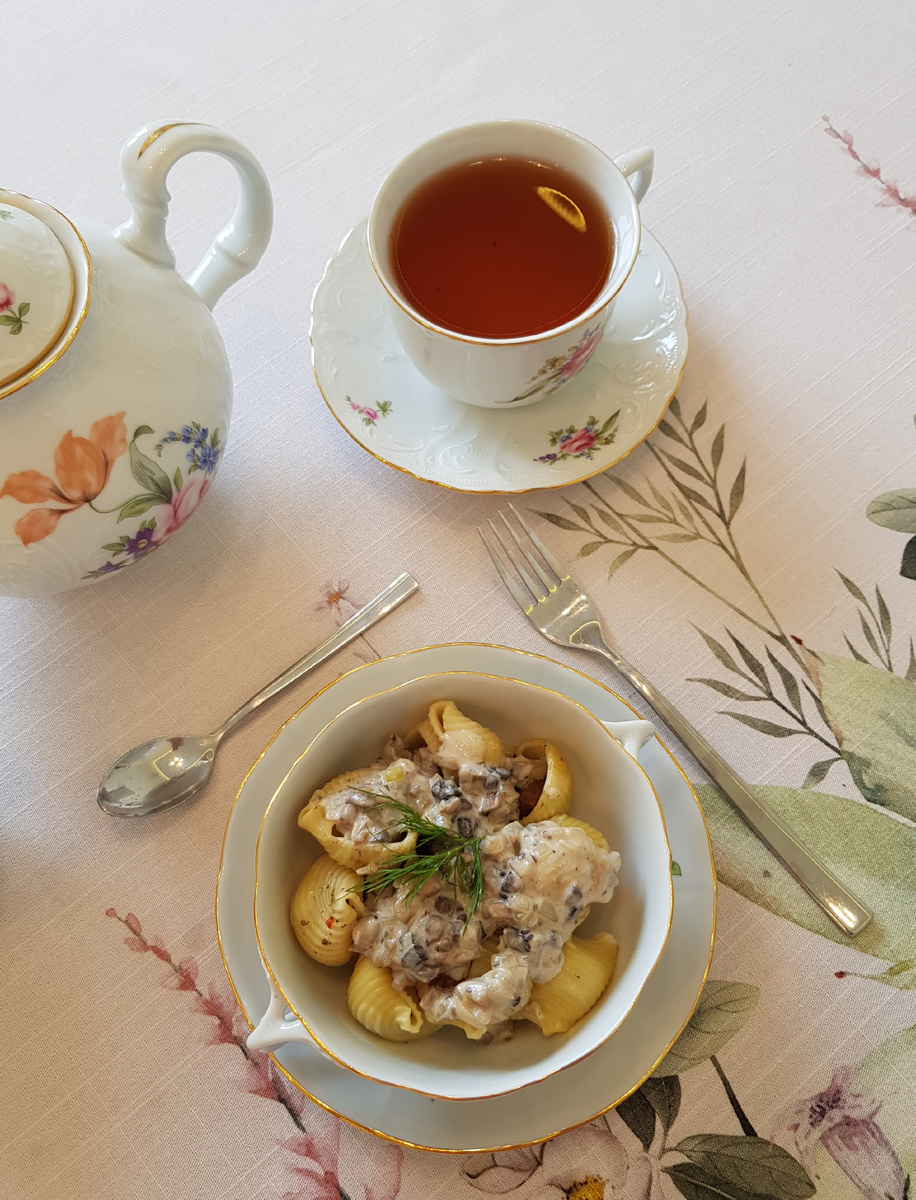 Пока макароны сохраняют тепло, их можно подать на стол, щедро полив грибным соусом, который добавит пикантности и завершит вкусовую симфонию блюда. Это не только сытно, но и очень атмосферно — идеальный вариант для семейного ужина или уютного обеда!