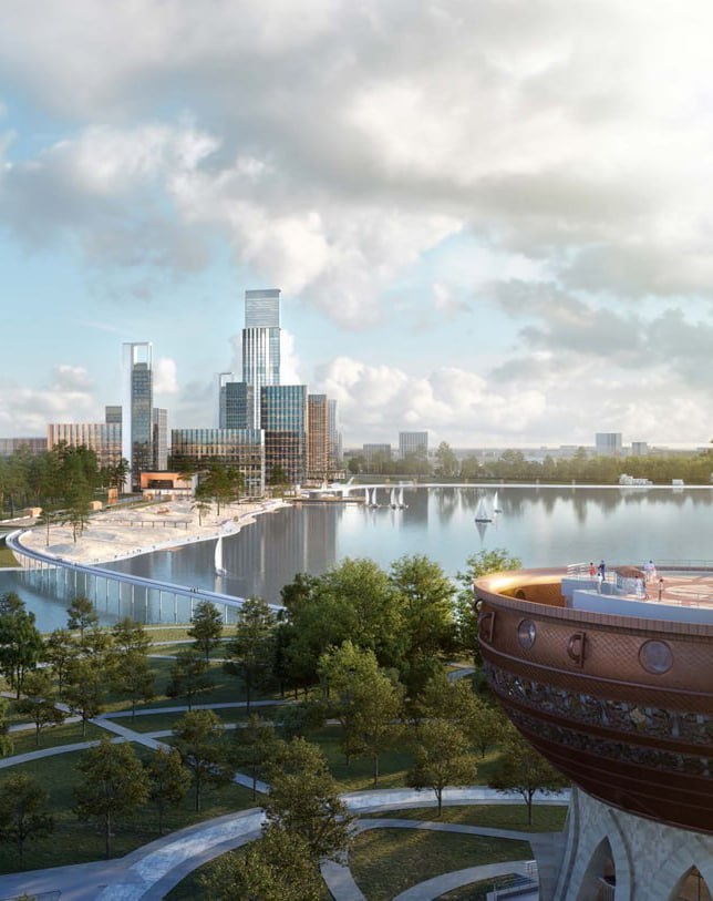 Проект реализуется при участии KravtGroup, его площадь превысит 302 тыс. кв. м, а объем инвестиций составит 29 млрд рублей. В состав войдут люксовая гостиница, апартаменты, конгресс-холл, офисный центр и торговый молл.