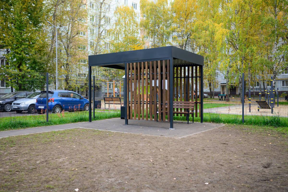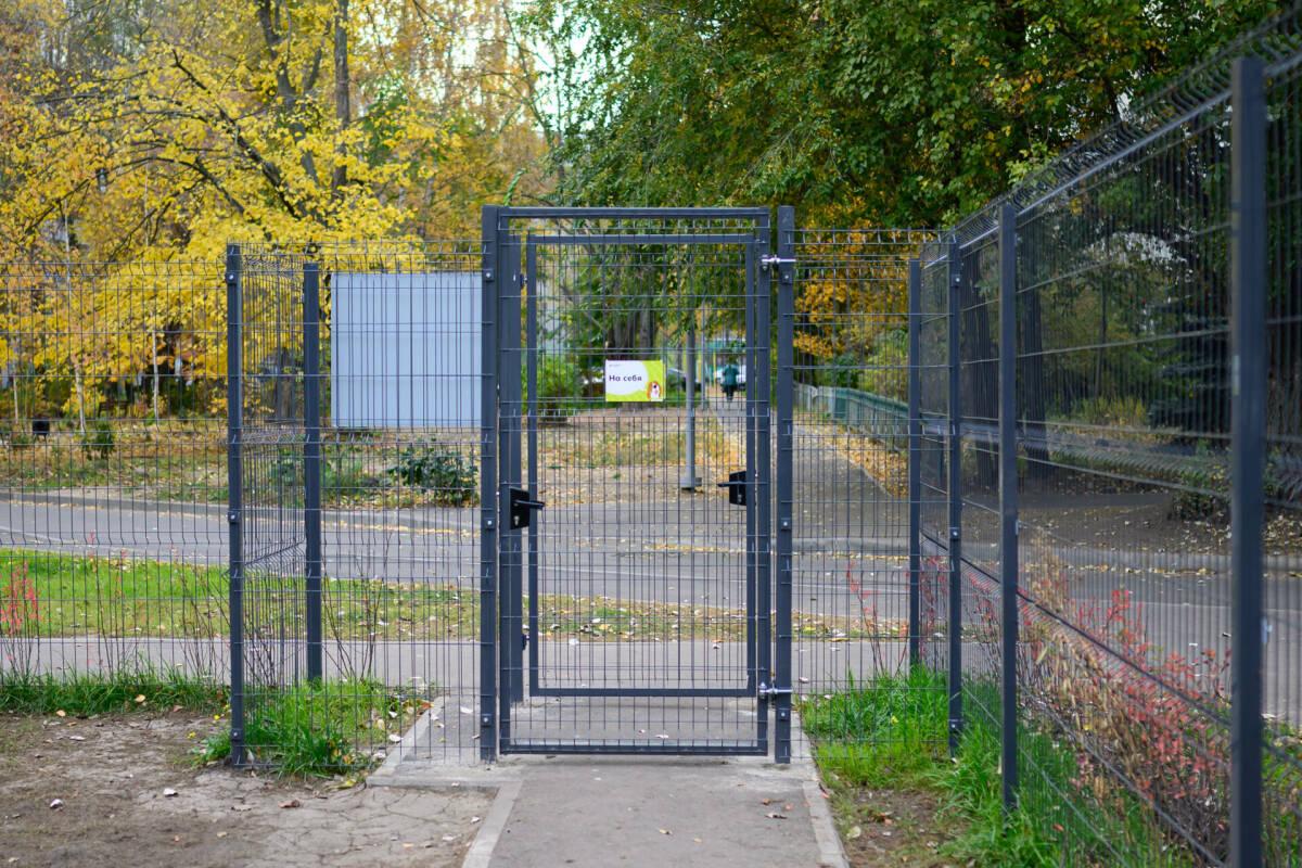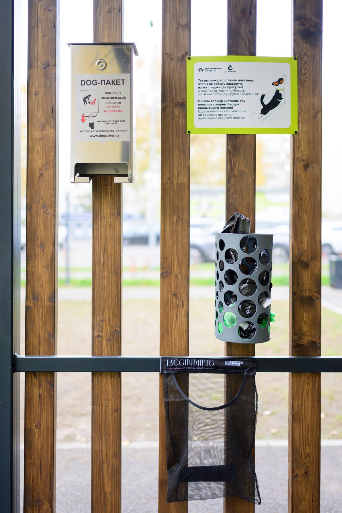 Площадка предназначена для коротких прогулок, игр и общения с питомцами. Здесь установлены навес, скамейки, крючки для личных вещей, а также диспенсеры для пакетов, которые жители наполняют самостоятельно.