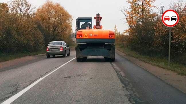 Согласно пункту 11.4 ПДД, правила допускают обгон некоторых типов тихоходных транспортных средств. Можно обгонять, не опасаясь штрафа, в следующих случаях:
