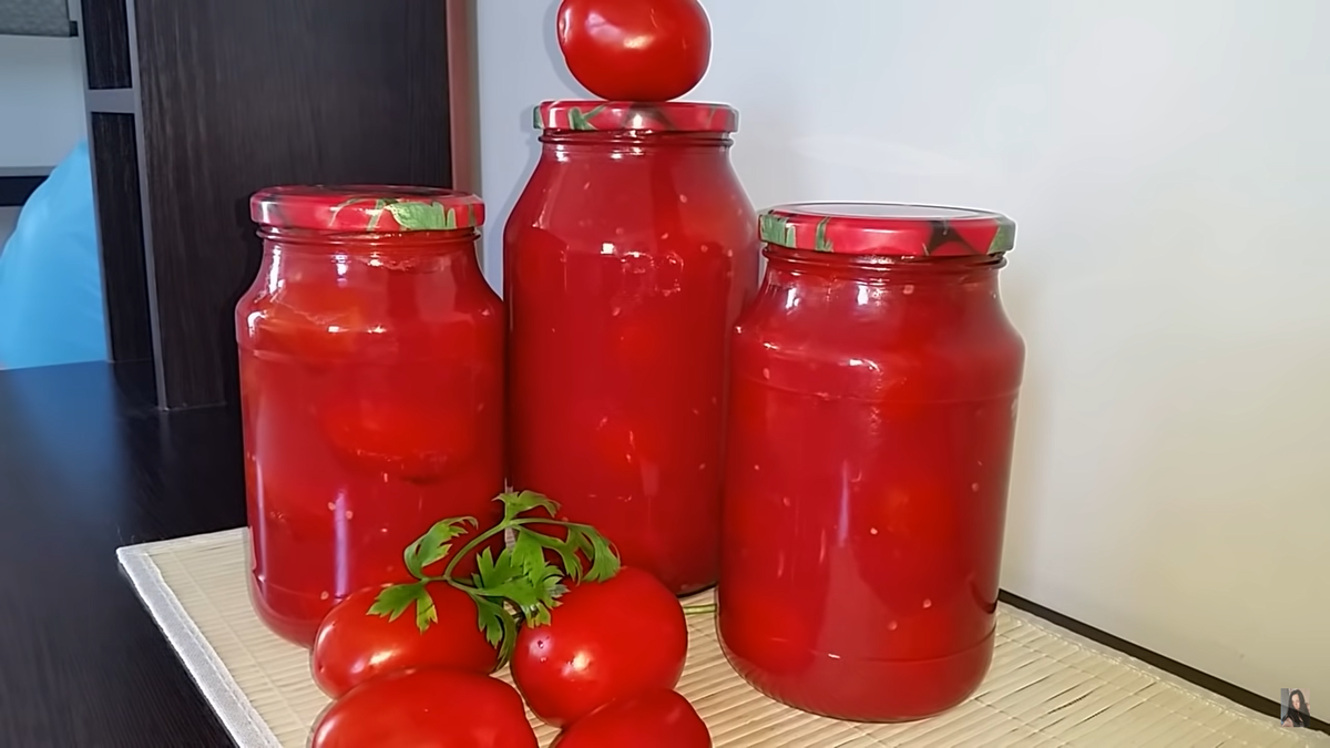 Банки и крышки должны быть тщательно вымыты и стерилизованы, чтобы избежать порчи. Самый простой способ — стерилизовать паром или кипятком. Затем аккуратно укладываем помидоры в стерильные банки, заливаем горячим томатным соком, чтобы они были полностью покрыты. Сразу закрываем банки крышками, переворачиваем их вверх дном и укутываем одеялом, давая им остыть в таком положении.