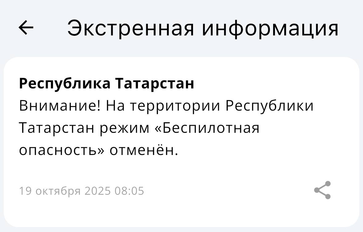«Угроза атаки БПЛА» - если беспилотники обнаружены на территории Татарстана.«Беспилотная опасность» - в случае выявления БПЛА, движущихся по направлению к республике.@tatmediaofficial | Все каналы Татмедиа™ 1-й новостной MAX-канал Татарстана -...