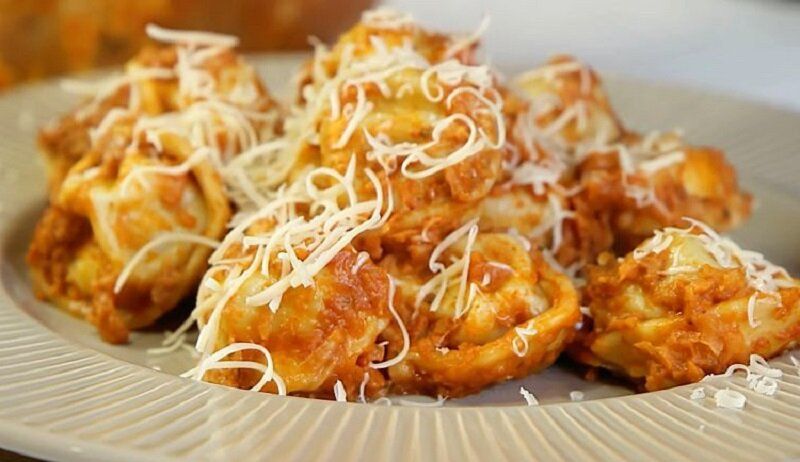 После завершения приготовления подайте блюдо горячим, щедро посыпав тертым сыром. Получившийся результат обязательно удивит даже самых взыскательных гурманов. Если использовать домашние пельмени, вкус будет ещё более насыщенным!