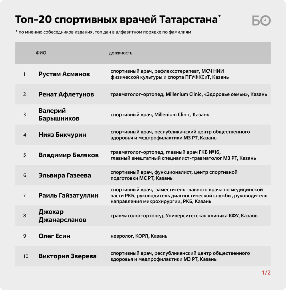 «В последнее время профессиональных спортсменов, в том числе топовых, стали чаще оперировать в Казани. Раньше сложно было представить, чтобы, например, игрока топовой команды КХЛ, тем более легионера, вообще лечили в России», — говорят собеседники БИЗНЕС Online о буднях спортивных врачей. Спрос на их знания растет не только среди профессионалов, но и среди любителей, которые все чаще получают травмы, занимаясь бегом, горными лыжами и другими активностями. «В поликлиниках и горбольницах таких специалистов нет, это штучный товар», — говорят собеседники, добавляя, что к лучшим из них выстраиваются очереди.