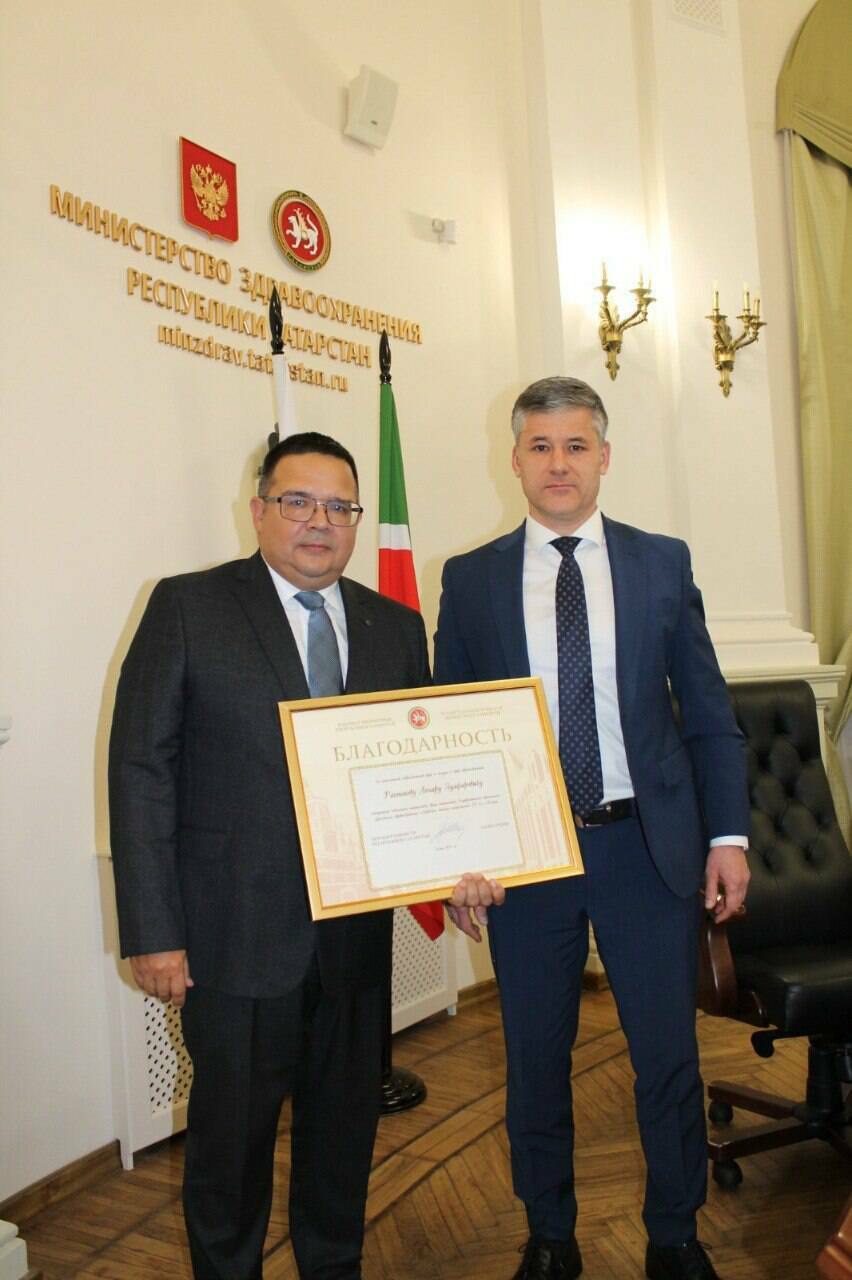 За выполнение задач в зоне СВО он уже был удостоен медалей «За боевые отличия» и «За участие в СВО». Сегодня заместитель министра здравоохранения РТ Ильдар Фатихов вручил ему Благодарность Правительства Татарстана за многолетний добросовестный труд и заслуги в сфере здравоохранения.
