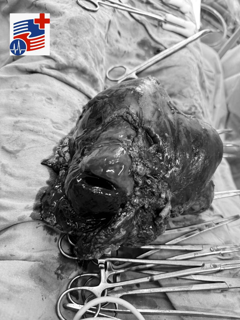 Для спасения пациентки была экстренно собрана мультидисциплинарная бригада. Четырехчасовая операция проходила в два этапа: сначала сосудистые хирурги остановили кровотечение, перевязав смещенные сосуды, затем урологи удалили почку вместе с разорвавшейся опухолью. После успешной операции пациентка была выписана домой и будет жить с одной здоровой почкой.