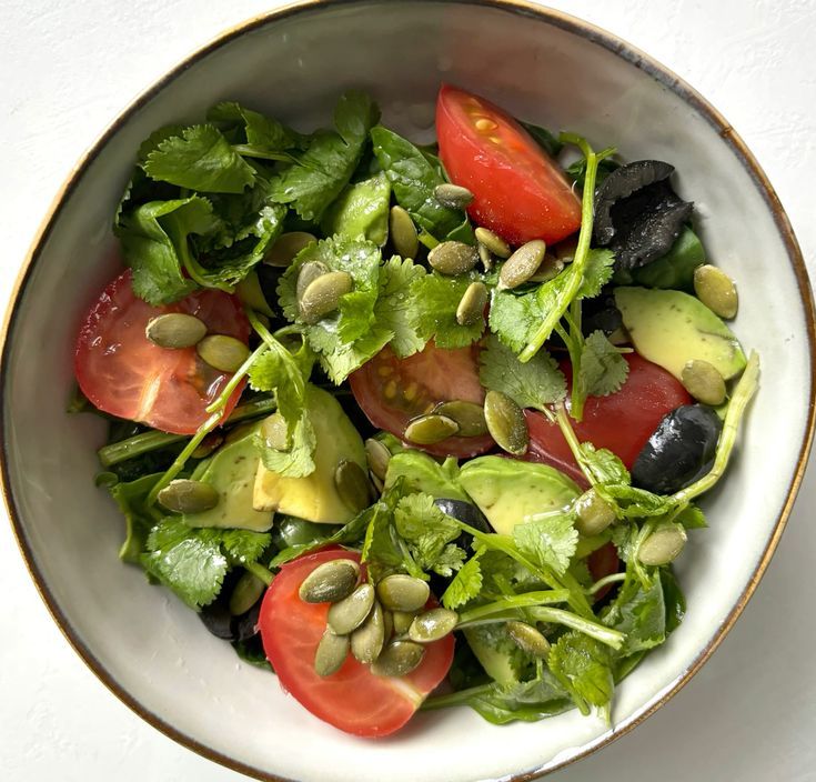 - Добавьте полезные жиры в виде оливкового масла, орехов или авокадо к каждому приему пищи для улучшения усвоения витаминов и поддержания энергетического баланса.
