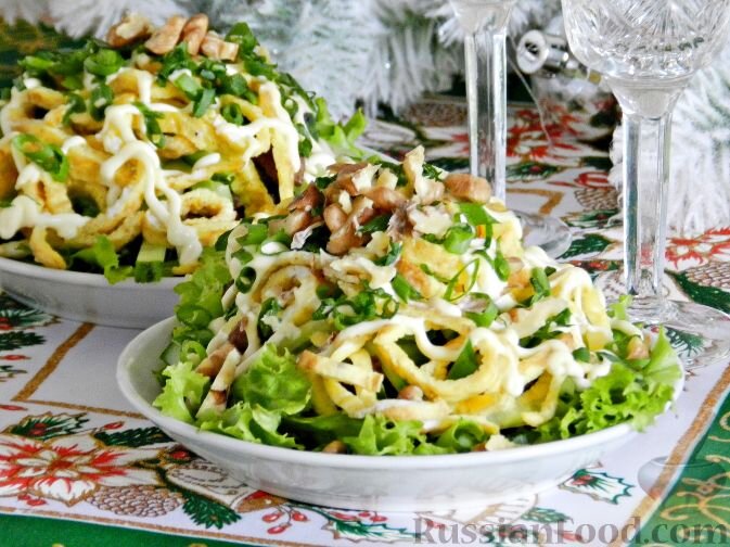 - Салат "Римский" с говядиной — это сытное яство из жареной говядины, свежих огурцов и орехов, приправленное майонезом. Он идеально украсит любой праздничный стол.