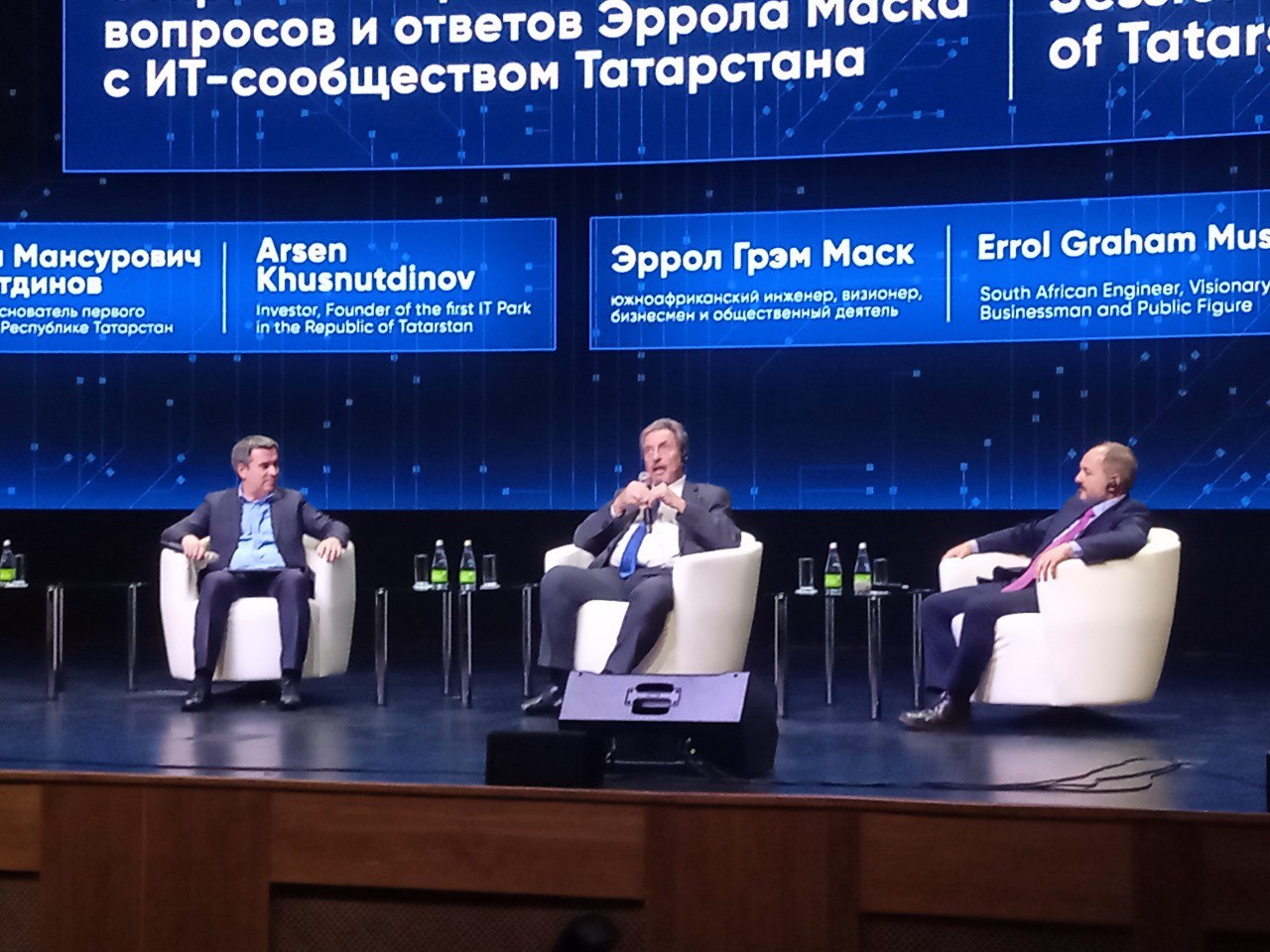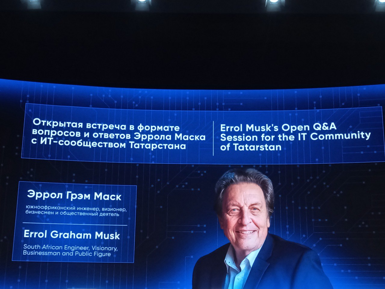 Сегодня в ИТ-парке им. Башира Рамеева состоялась уникальная встреча с инженером и предпринимателем Эрролом Маском — отцом Илона Маска. Он назвал Казань «выдающимся городом» с планированием уровня первого мира и пообещал рекомендовать её своим сыновьям.