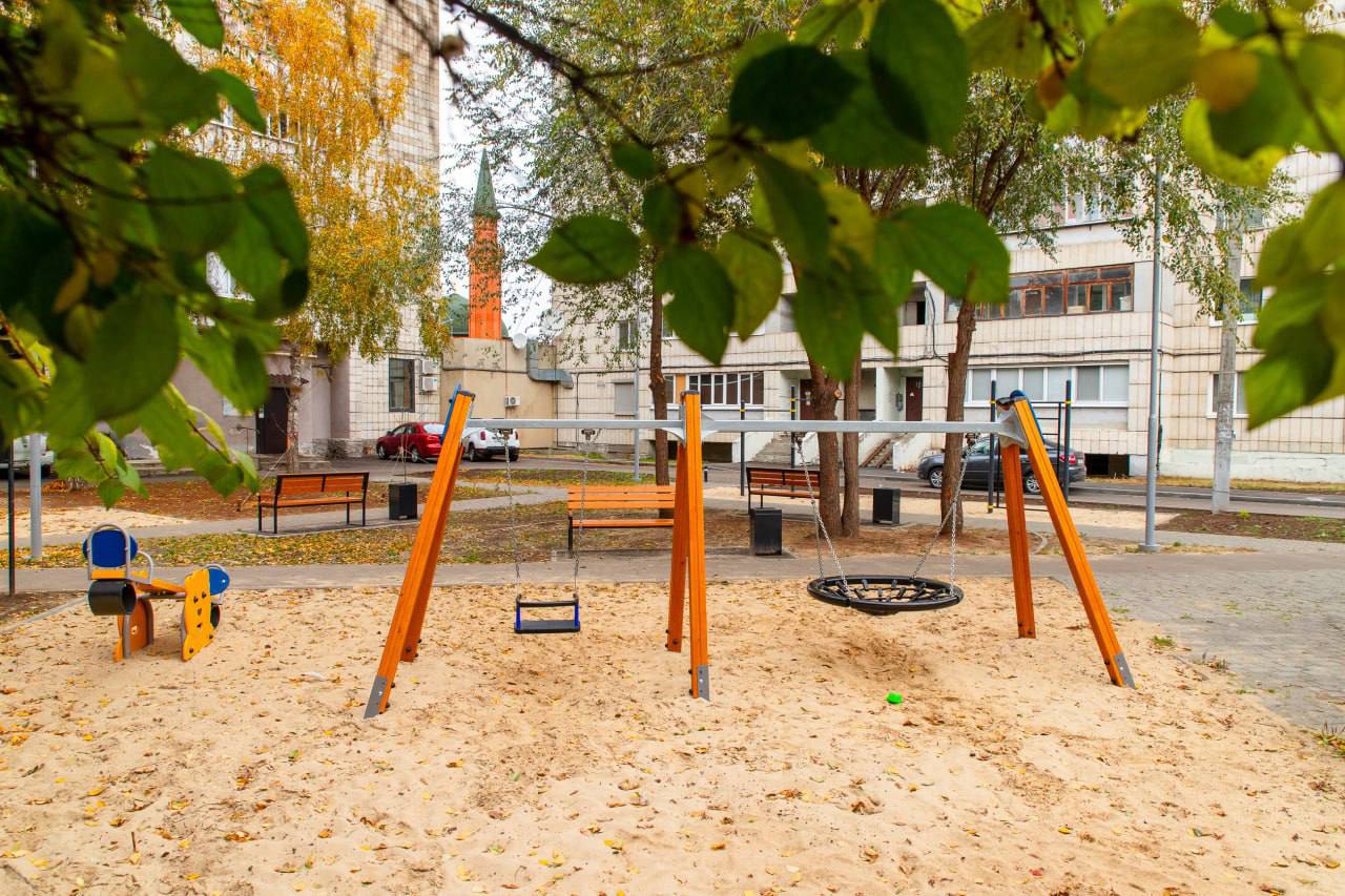 На ул.Клары Цеткин, 9 и ул.Столярова, 6 заменили асфальт, модернизировали освещение, установили новые детские площадки и удобные лавочки, обновили проходы к подъездам с правильным уклоном, чтобы там не скапливалась вода. А во дворе на ул.Ибрагимова, 28а-30а увеличили количество парковочных мест и установили детскую площадку с качелями, турниками и песочницей.