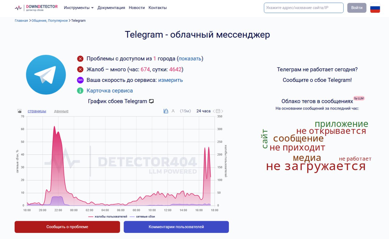 Пользователи обоих мессенджеров сообщают о невозможности отправлять и получать сообщения, а также загружать медиафайлы. При этом 42% жалоб пользователей Telegram связаны с тем, что приложение вовсе не открывается, еще 25% — с отсутствием оповещений. В WhatsApp* 60% жалоб касаются проблем с прогрузкой уведомлений, и лишь 19% — сбоев в работе самого мессенджера.