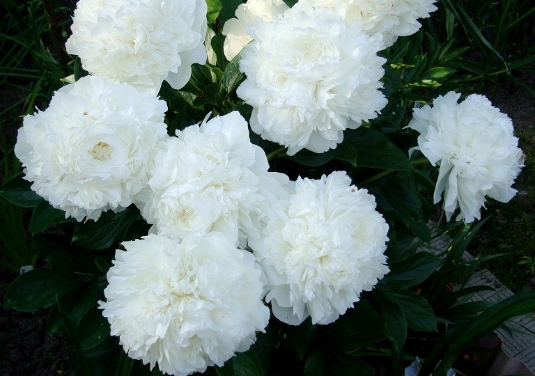 - 'Фестива Максима': белоснежные цветы с малиновыми мазками, давно завоевавшие сердца садоводов, характеризуются сильным ароматом и настоящим историческим шармом.