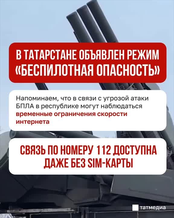 «Угроза атаки БПЛА» - если беспилотники обнаружены на территории Татарстана.