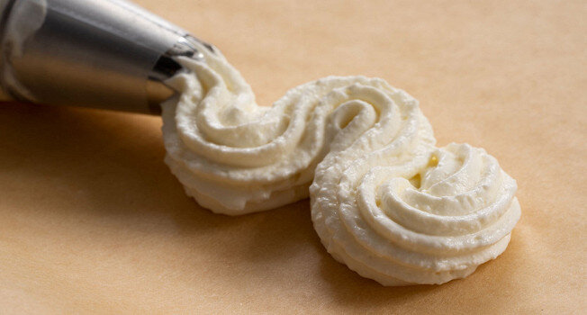Когда смесь станет однородной, плавно увеличьте скорость до максимальной и взбивайте до получения пышного крема, который не будет стекать с венчика. Это займет не больше нескольких минут.