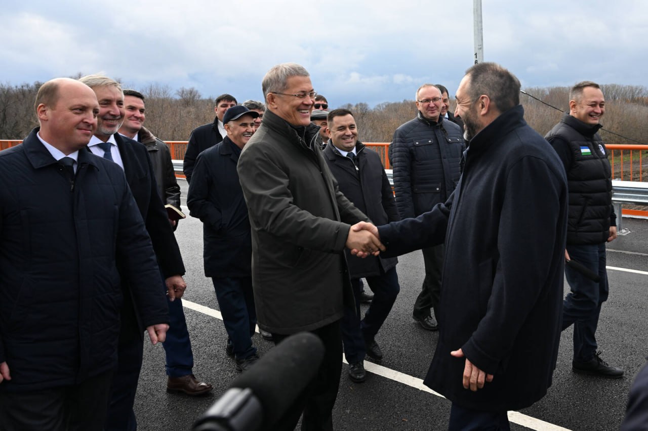 Радий Хабиров и Алексей Песошин открыли мост на границе Татарстана с Башкортостаном. В церемонии принял участие и вице-премьер РФ Марат Хуснуллин.