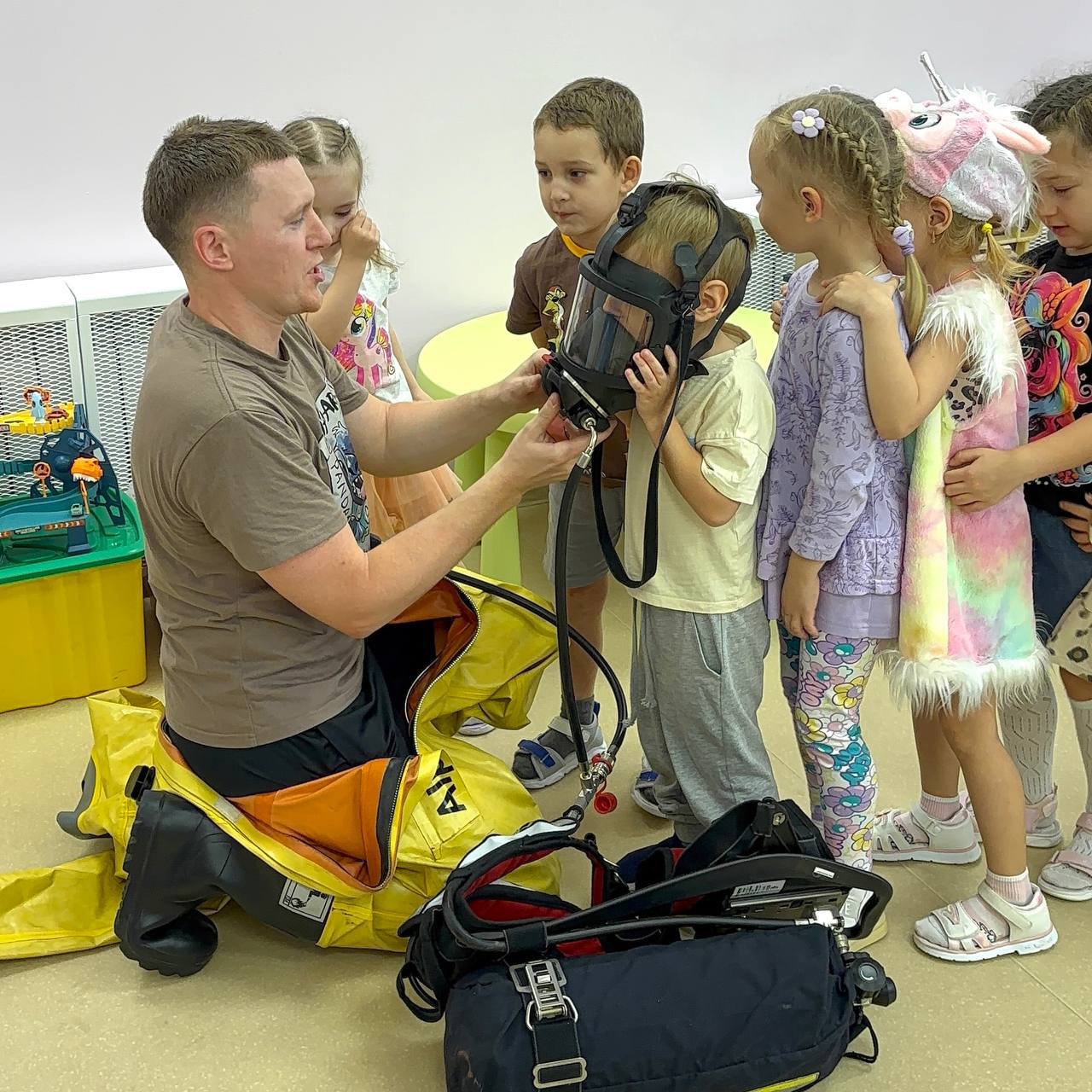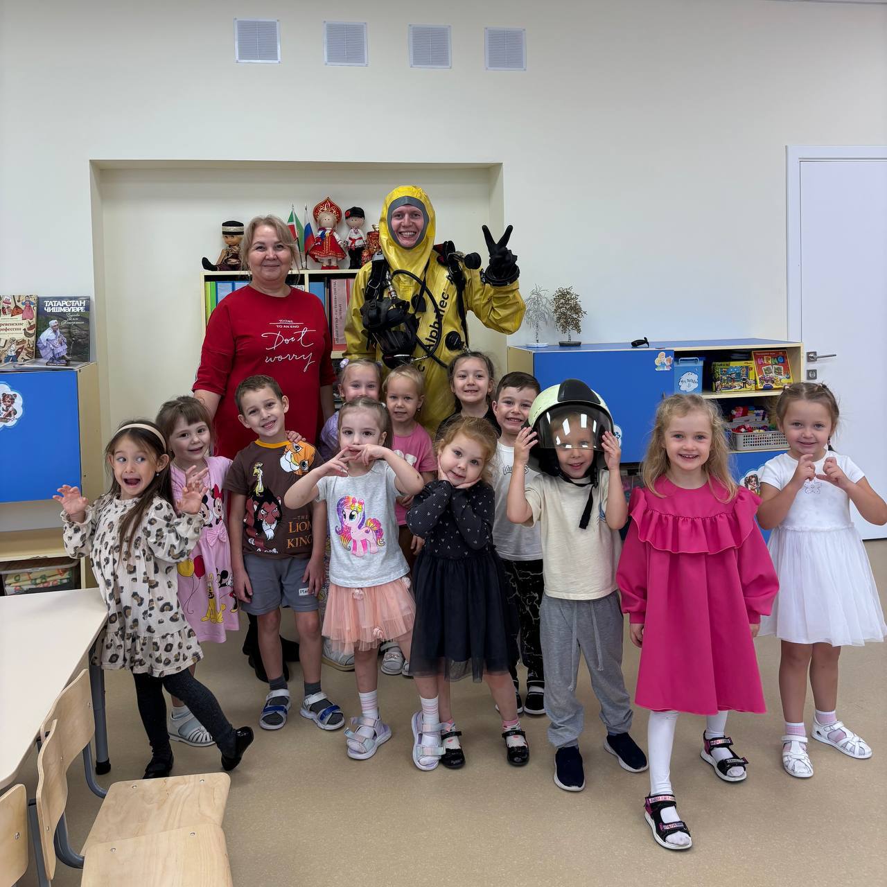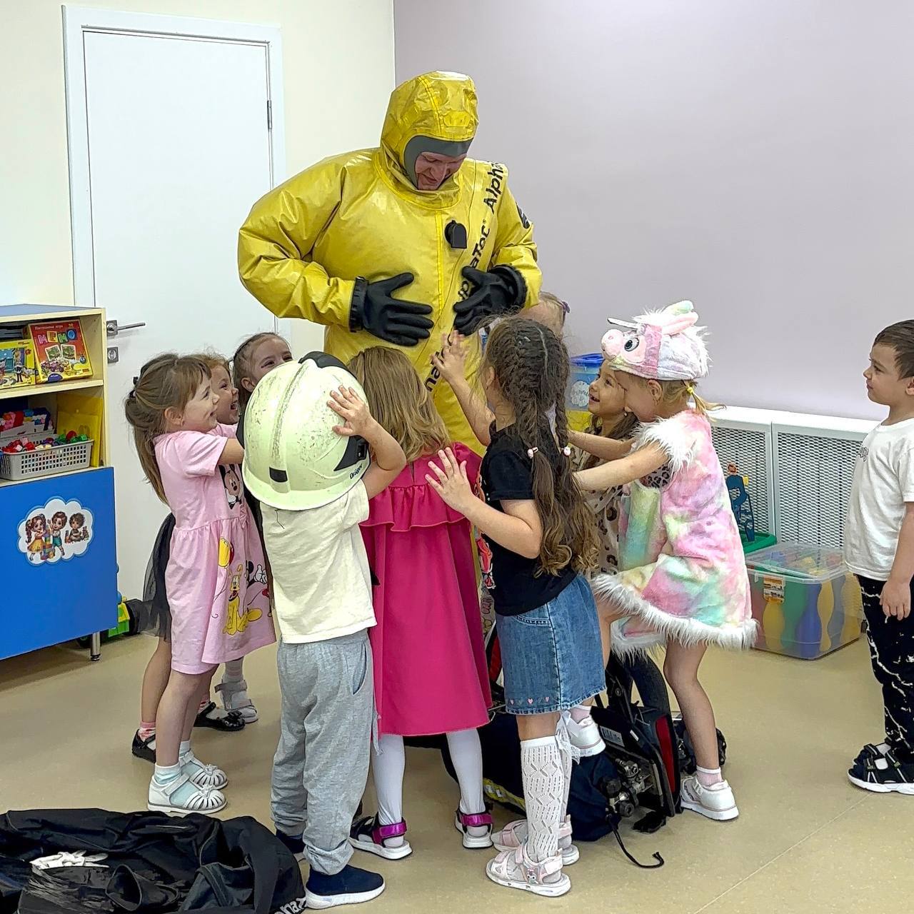 Малыши с горящими глазами рассматривали тяжелый защитный костюм, знакомились с устройством дыхательного аппарата и слушали истории о спасении. А четырехлетний Саид Нуретдинов наверняка гордился своим папой больше всех! Эта встреча — не просто развлечение, а важный урок о смелости, ответственности и о том, что герои живут среди нас.