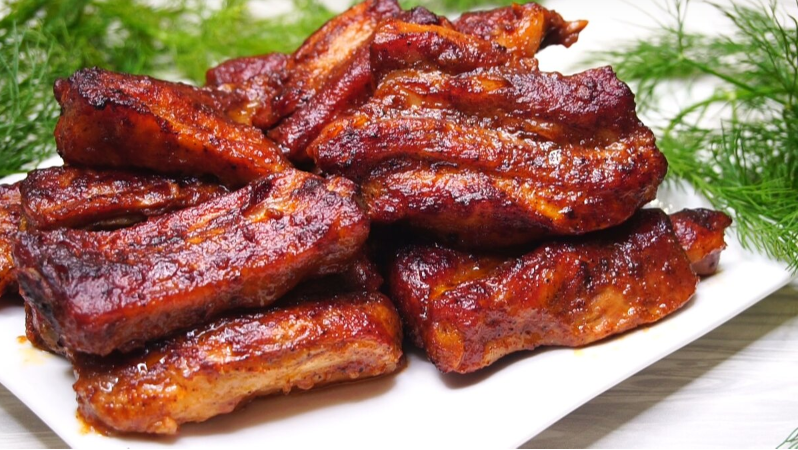 Полейте ребрышки оставшимся соусом и верните их в духовку, запекая еще 30-40 минут. Каждые 10-15 минут рекомендуется поливать ребра соусом для создания аппетитной корочки. На выходе получаются невероятно мягкие и ароматные ребрышки, которые легко станут звездой любого стола.