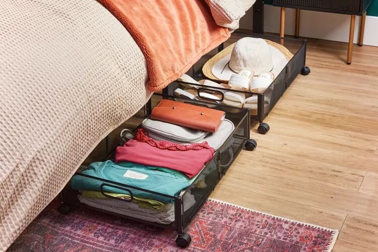 Важно правильно организовать место для хранения летней одежды. Если в квартире нет кладовой, могут пригодиться пластиковые контейнеры, которые удобно разместятся под кроватью. В этом случае важно, чтобы все ёмкости были чистыми и сухими, поскольку картон привлекает насекомых, а в пластиковых при повышенной влажности может развиваться плесень. Даже чемоданы можно задействовать, только соблюдая условия по чистоте.