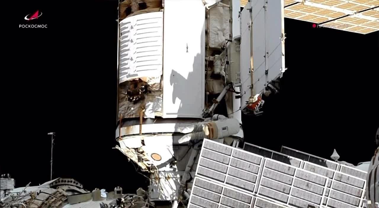Сергей Рыжиков и Алексей Зубрицкий устанавливают научное оборудование. В космосе они пробудут 6 часов 28 минут.