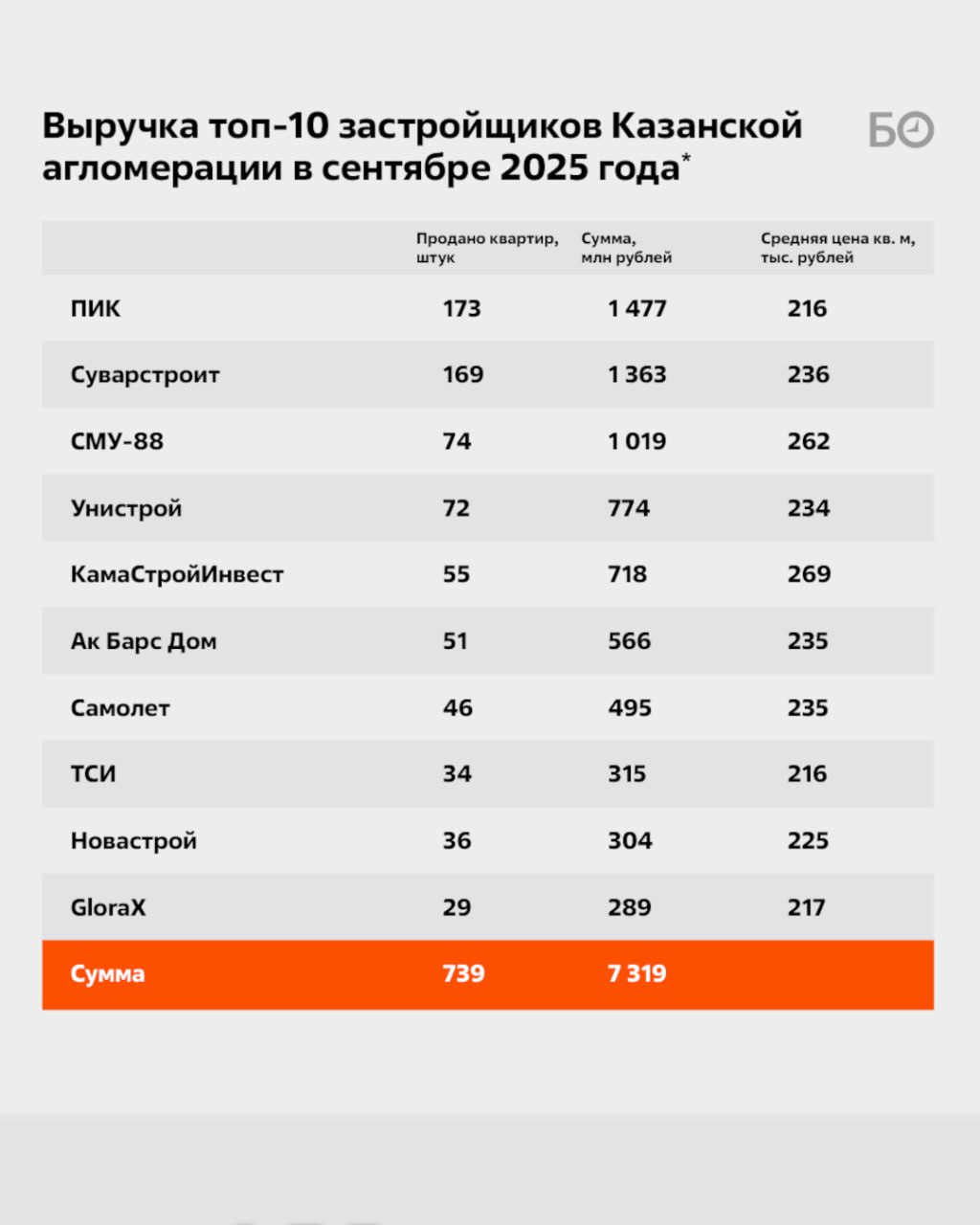 Рынок новостроек в Татарстане демонстрирует рост: в сентябре зарегистрировано 1 777 сделок — на 74% больше, чем год назад. Эксперты объясняют это низкой базой прошлого года после отмены льготной ипотеки. При этом свыше половины сделок совершается за наличные, а застройщики активно используют прямые скидки и программы субсидирования. Средняя цена новостройки в Казани составляет 250 тыс. рублей за квадратный метр, по республике — 213 тысяч.
