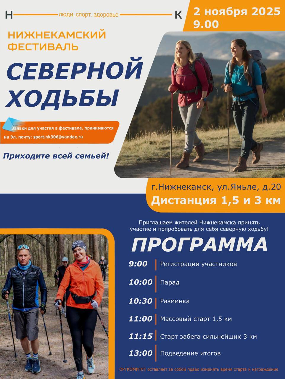 Завтра, 2 ноября, в Нижнекамске пройдет Фестиваль северной ходьбы!