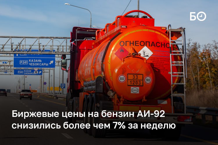 На бирже цена АИ-92 снизилась более чем на 7% за неделю — до 66 868 рублей за тонну.