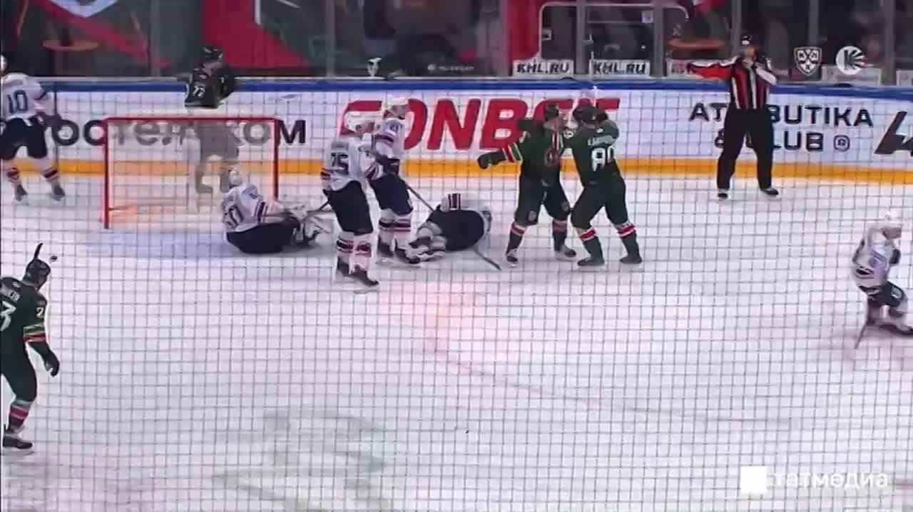 Казанцы начали путь к 12-й победе подряд активным прессингом, в первые 5 минут штурмуя ворота автозаводцев. Несмотря на это, тольяттинцы, контратакуя, забили первыми. К середине первого периода казанцы получили возможность сыграть в большинстве и реализовали преимущество - Лямкин набросил от синей, а Сафонов подправил. Через минуту казанцы получили четырехминутное большинство, но на этот раз «Лада» выстояла.