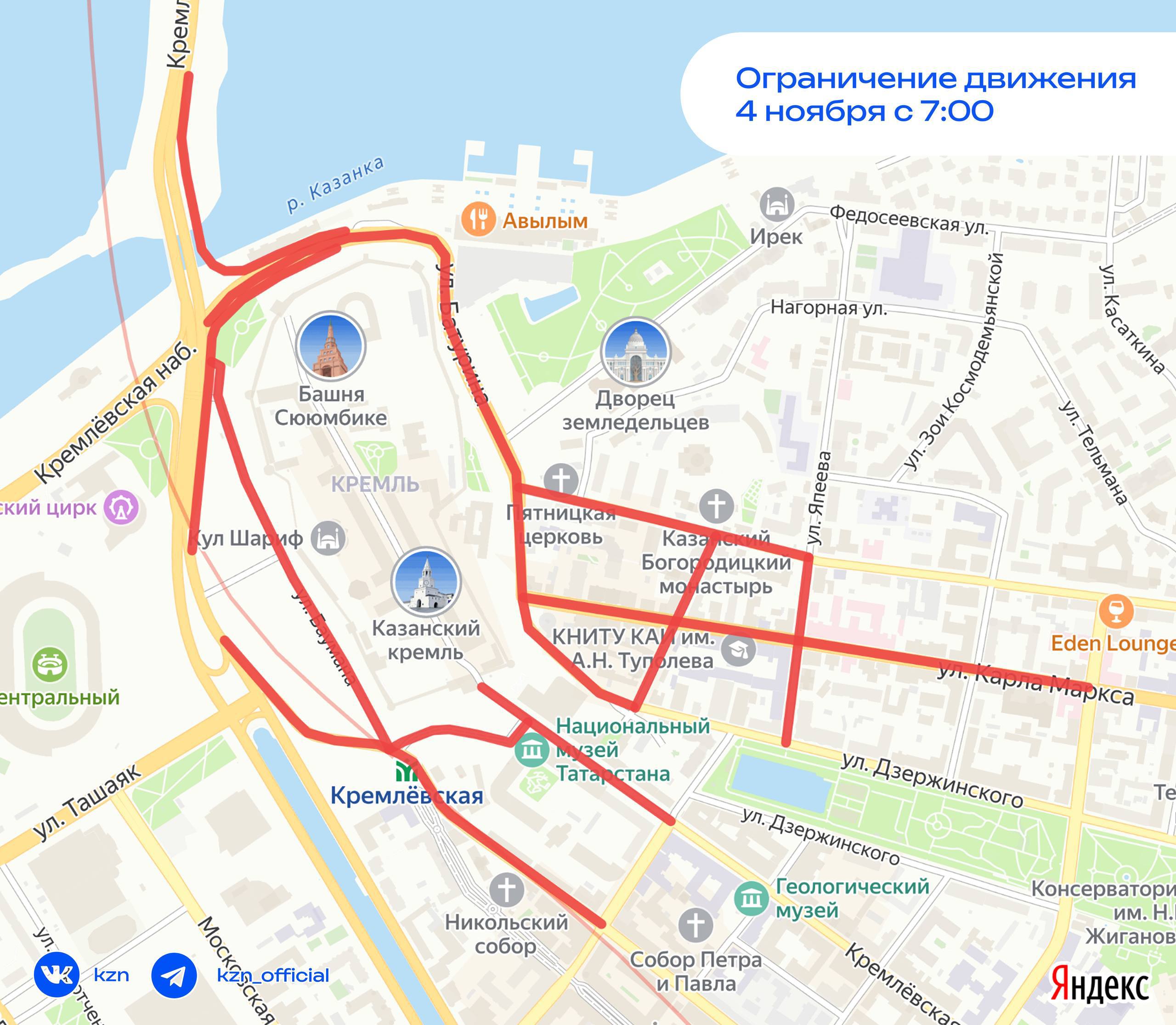 Праздничный молебен начнется в 7:30 утра в Благовещенском соборе, после чего состоится Крестный ход. В связи с этим с 7:00 утра будет временно ограничено движение транспорта, его будут восстанавливать по мере прохождения хода. Делимся схемой