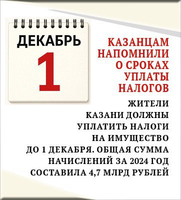 Жители Казани, как и все граждане страны, должны уплатить налоги на имущество физических лиц до 1 декабря. Общий объем начислений для столицы Татарстана по итогам 2024 года составляет 4 млрд 709 млн рублей.