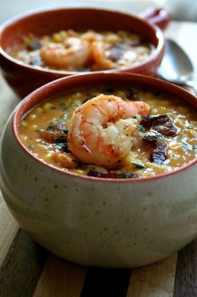 5. За несколько минут до подачи на стол добавить креветки и бекон, посыпать свежей нарезанной петрушкой. Подавайте сразу же, наслаждаясь уникальным сочетанием вкусов и ароматов!