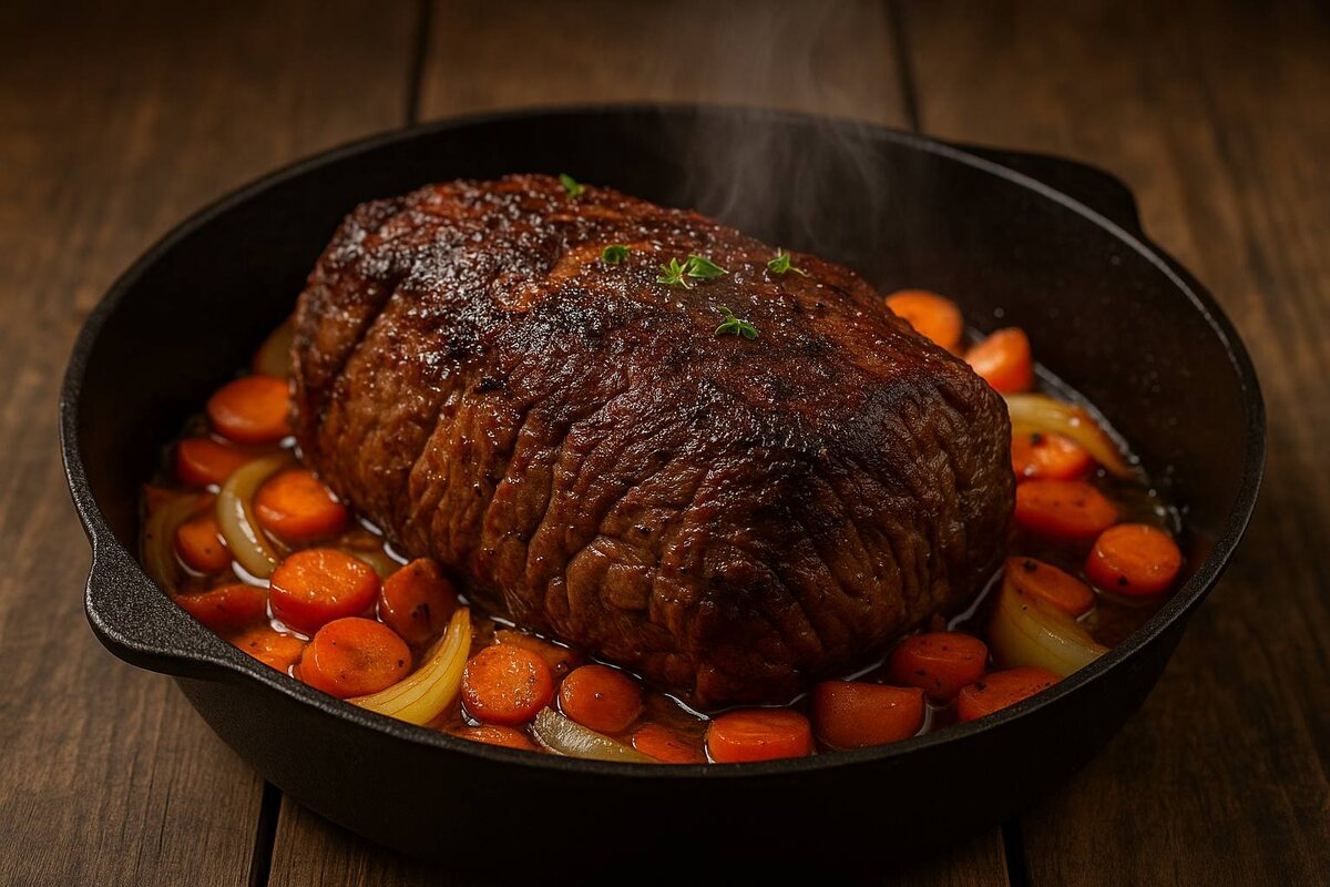 Запах свежеприготовленного мяса в доме — это всегда приглашение к уютному обеду. Когда на кухне медленно запекается говядина, а овощи карамелизуются, стоит отложить дела и сосредоточиться на семейном общении. Это идеальный способ провести время с близкими, и в этом блестящем блюде нет ничего лишнего, только терпение и ароматы.