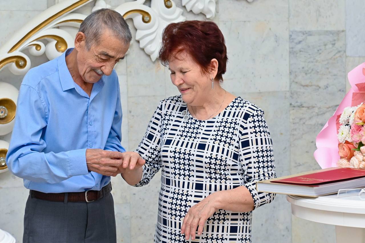 Во Дворце бракосочетания Нижнекамска супруги Раис и Зульфия Сахибуллины отметили золотую свадьбу — 50 лет вместе!