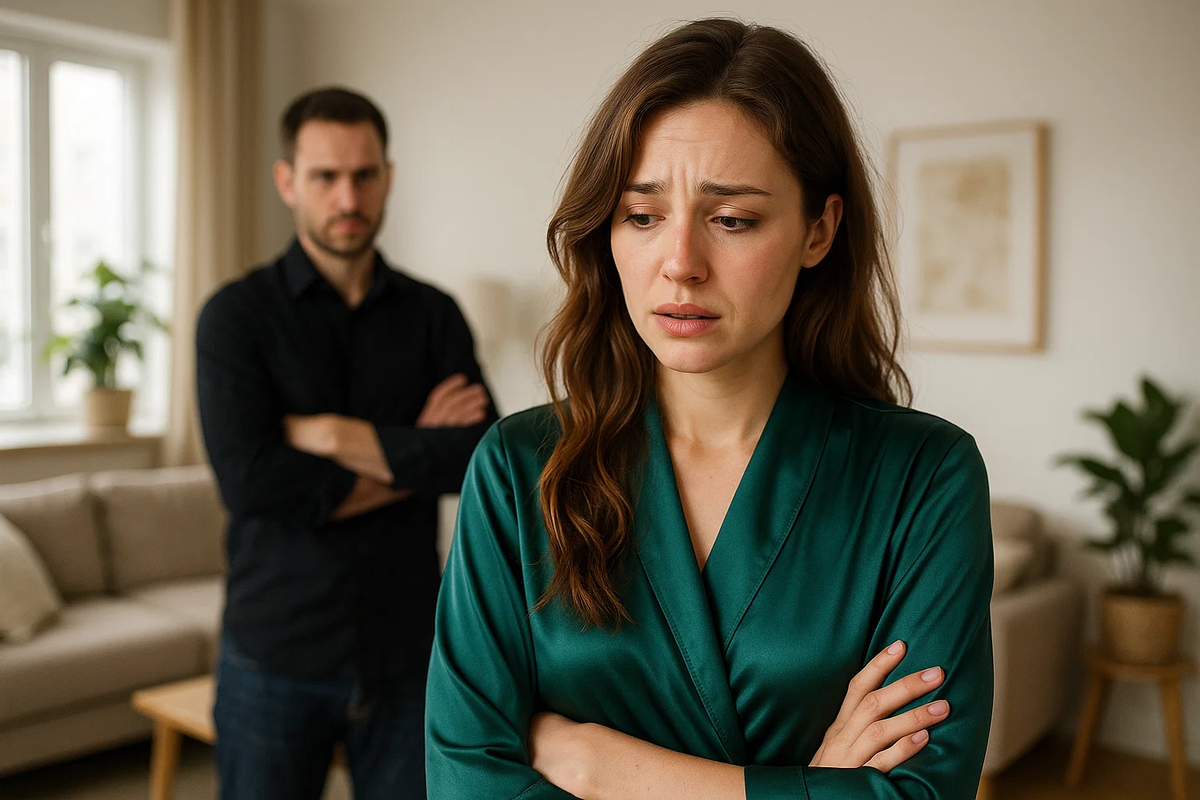 Молодая мать, истощённая постоянной заботой и заботами, находила всё меньше времени для себя. С каждым днём её внешний вид менялся, и замученное тело казалось её мужу неактуальным. К тому же, муж не стеснялся озвучить свои мысли.