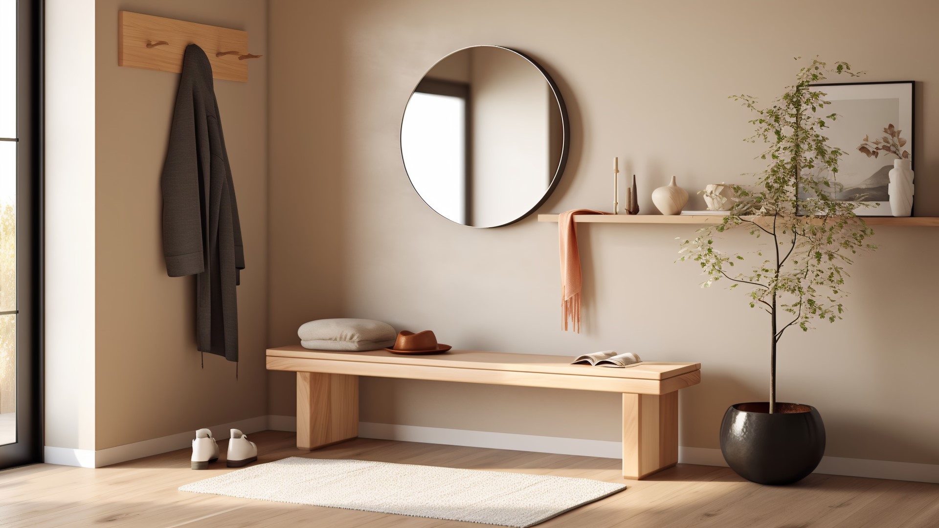 Важно правильно подобрать напольное покрытие и отделку стен в прихожей. Одним из лучших вариантов станет матовая краска. Она точно передает цвет, не создает бликов, за ней легко ухаживать. Если нужно визуально расширить пространство, выбирайте светлые оттенки.