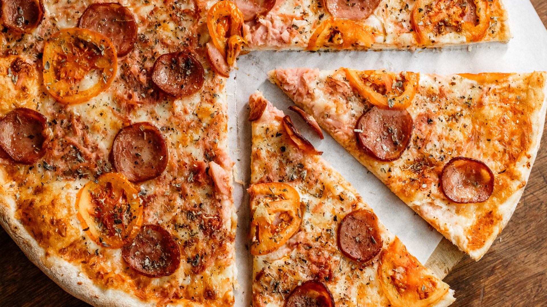Нанесите на жидкую основу томатный соус или кетчуп, а затем разложите нарезанную колбасу. Сверху посыпьте пиццу тертым сыром. Выпекайте блюдо 15 минут при температуре 180 градусов, советует портал «Аймкук». Готово!