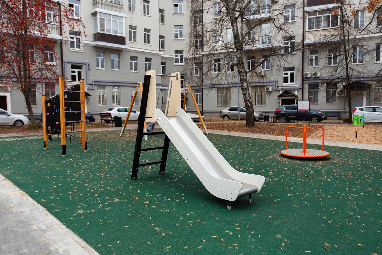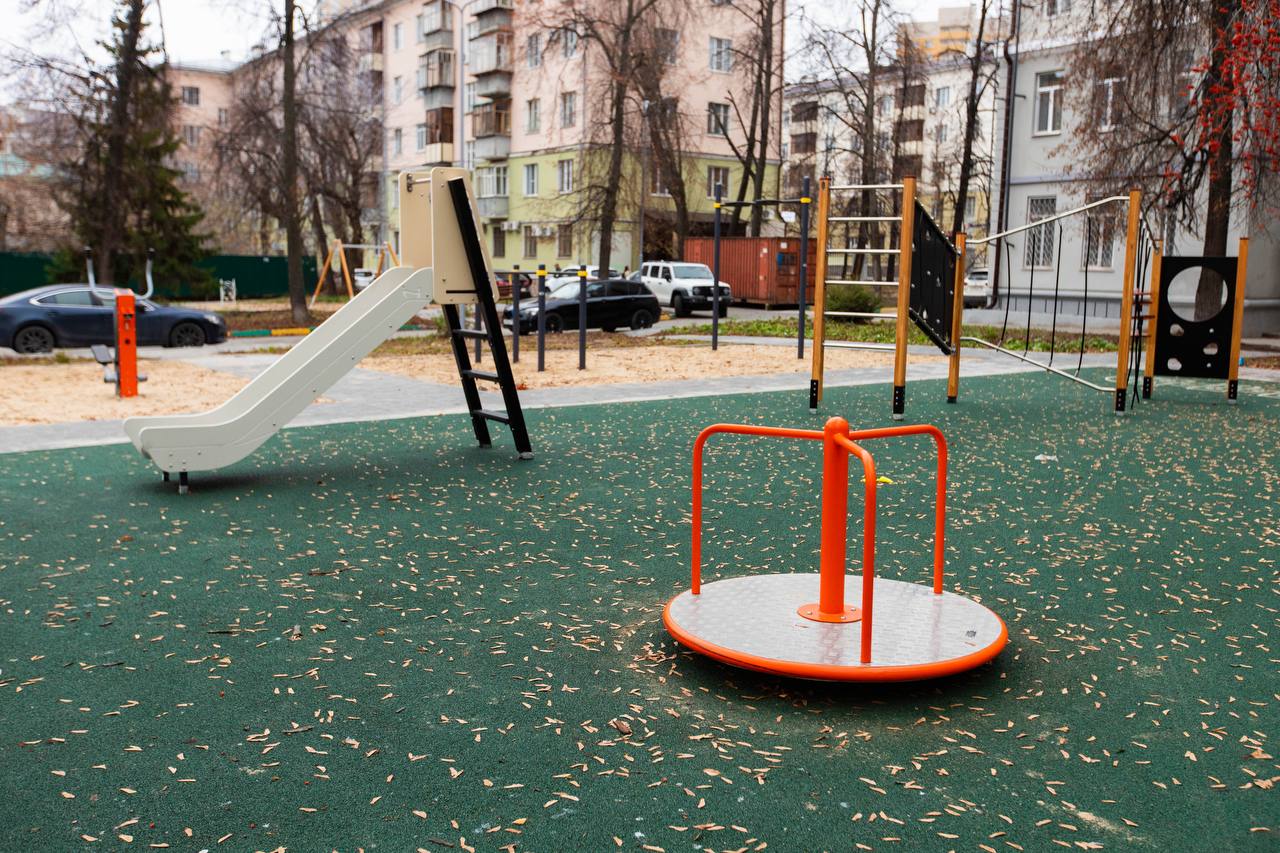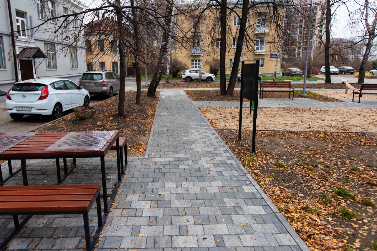 Во дворе по ул.Павлюхина, 85 и 87 прошло благоустройство по программе «Наш двор». Здесь появились детская и спортивная площадка, шахматный стол и новое освещение. На площадке для детей по инициативе жителей сделали резиновое покрытие.